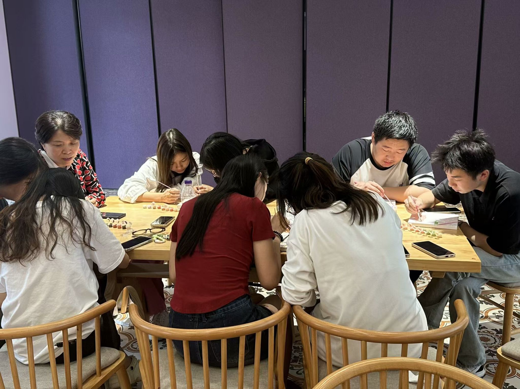 活动正式开始后,小组成员们热情高涨,迅速投入到描画创作中。一支支画笔在他们手中仿佛有了生命,灵动地在画纸上舞动。有的人微微皱着眉头,专注地勾勒着轮廓,每一笔都力求精准;有的人则面带微笑,大胆地运用色彩,将自己心中的绚丽世界展现在画纸上。细腻的线条、绚丽的色彩逐渐在画纸上铺展开来,仿佛在诉说着一个个动人的故事。