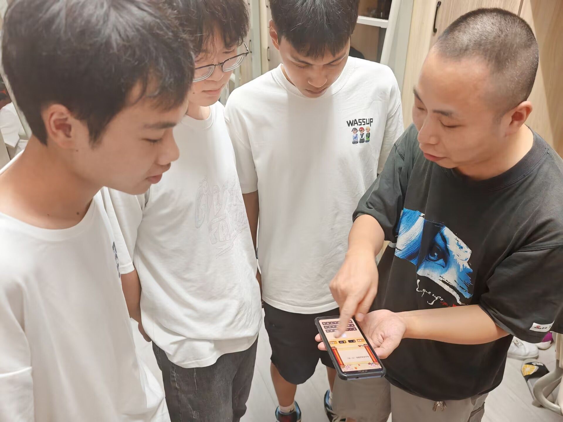 为了感受中秋节猜字谜的传统习俗,徐老师还特意在手机上下载了一款趣味横生的字谜游戏APP,邀请学生们一同参与,挑战成功者赢得零食奖励。。从“十五的月亮”(打一成语,谜底:正大光明)到“中秋菊盛开”(打一成语,谜底:花好月圆),字谜既考验了学生的智慧,又加深了他们对传统文化的理解与热爱。学生们聚在一起,时而眉头紧锁,时而恍然大悟,欢声笑语中,不仅增进了彼此间的友谊,也让传统文化在年轻一代中得以传承与发扬。徐老师说,本来按照传统习俗,应该是灯笼字谜的,但这次没买到灯笼,所以就因陋就简了,甚为遗憾。