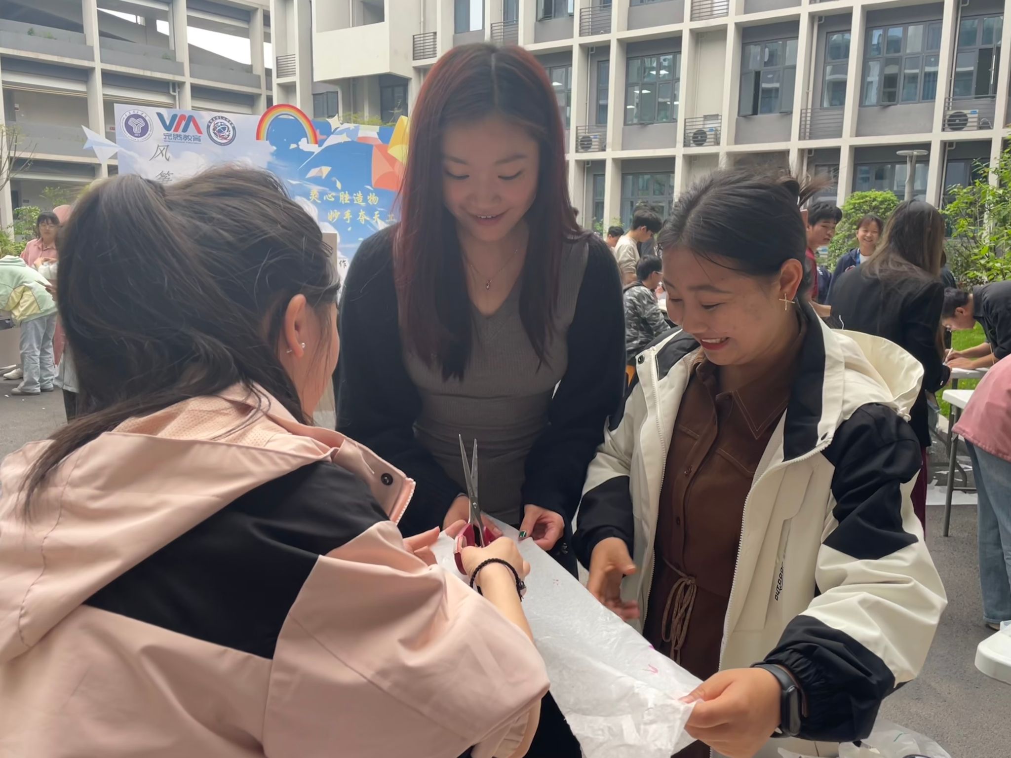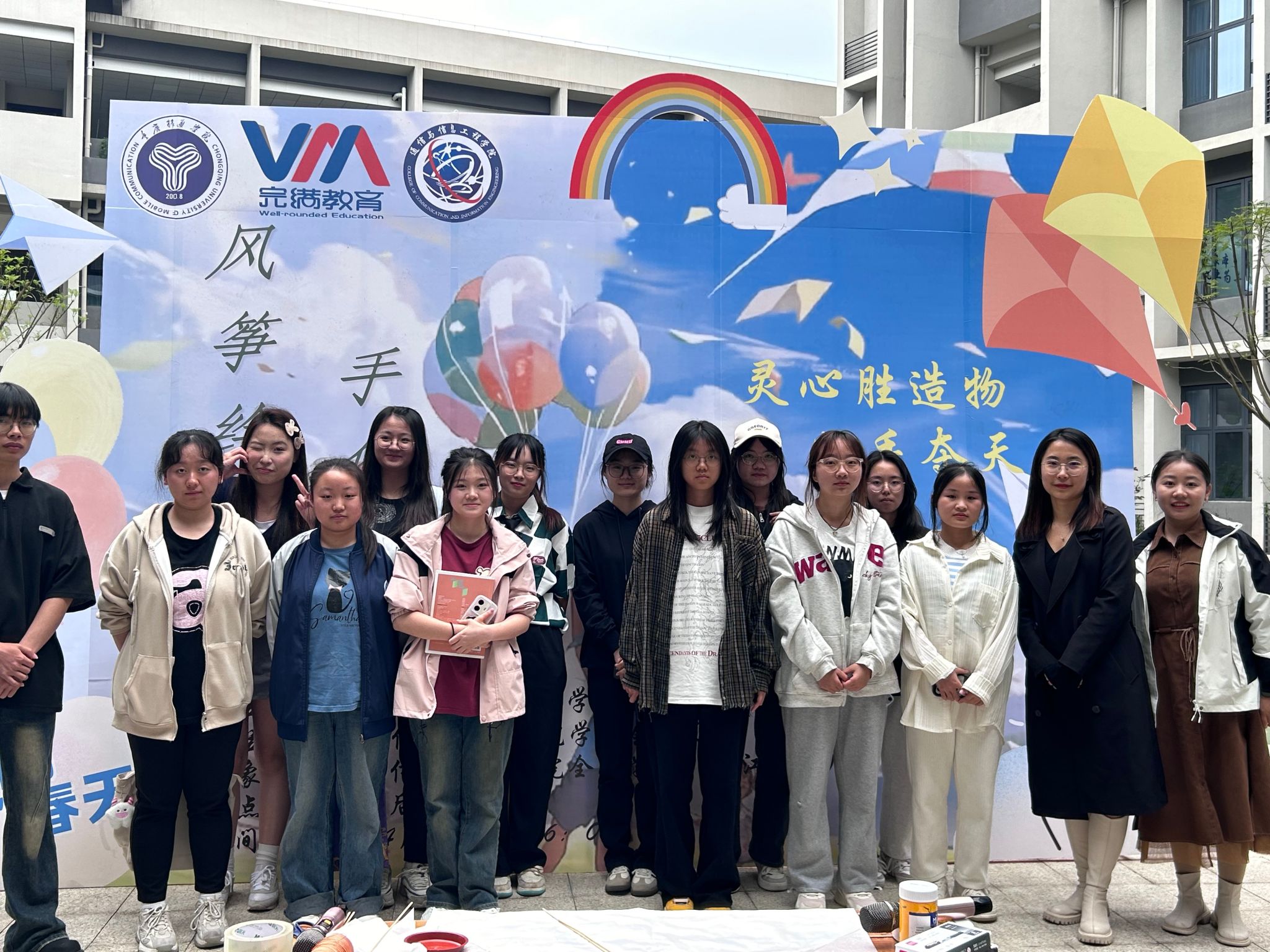 本次活动集趣味性、协作性和创造性于一体,同学们或独自操作,或三五成群地组队、协作共同绘制出一个个色彩斑斓、形态各异的风筝。从现场教学风筝的基本制作:准备材料、设计风筝形状、粘黏纸张,再到同学们自行发挥想象绘制风筝、安装风筝线和尾巴,每一个环节都在导师的组织下有条不紊地进行。在老师们的带领下,同学们学会了如何选择合适的材料、如何巧妙地运用色彩和线条,使风筝更加美观和实用。