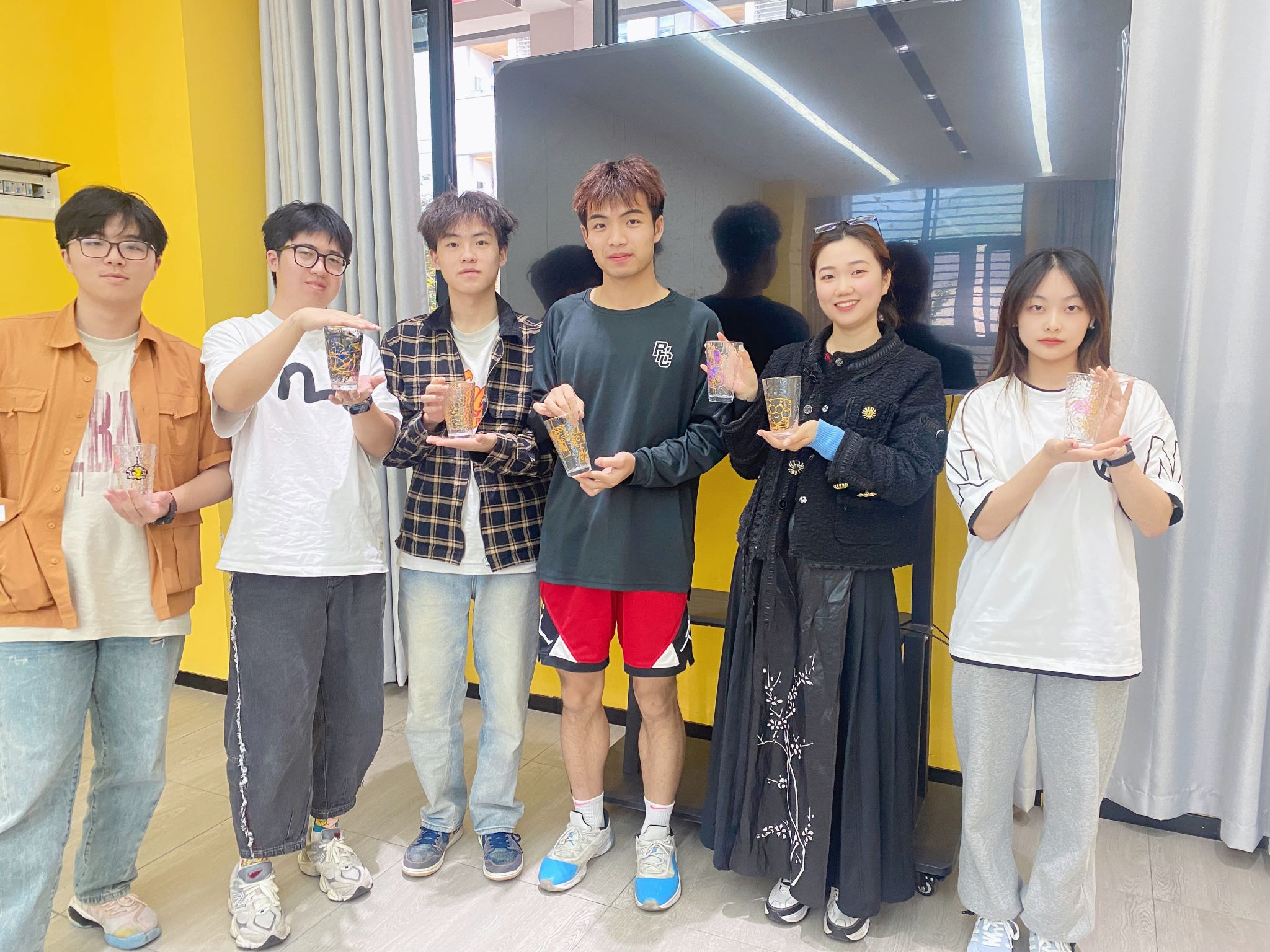 同时,导师王陈还借此机会引导学生们思考自己的职业规划,鼓励他们结合个人兴趣和特长,制定出切实可行的职业目标。在活动的后半部分,学生们还纷纷上台分享了自己家乡的美景美食。有的同学描绘了家乡的山水画卷,有的同学讲述了家乡的特色小吃,现场气氛热烈而温馨。通过分享,学生们不仅增进了对彼此的了解,还感受到了不同地域文化的魅力。随着时间的推移,一幅幅精美的手绘玻璃杯逐渐呈现在大家眼前。师生们纷纷展示自己的作品,并交流创作心得。整个活动现场充满了欢声笑语和艺术的氛围。