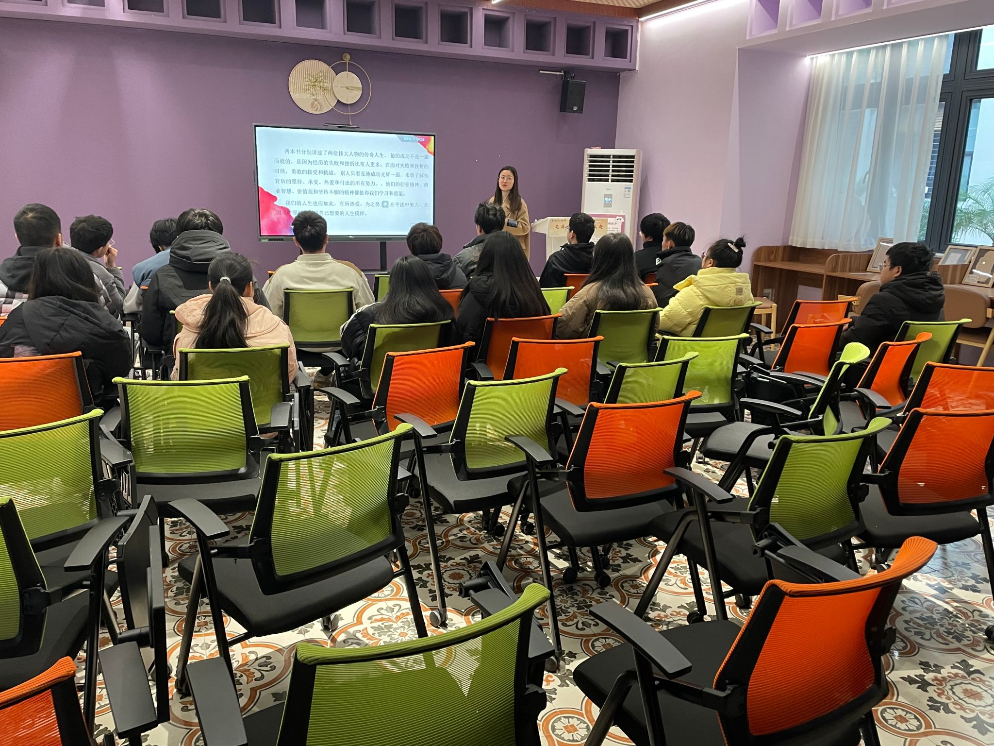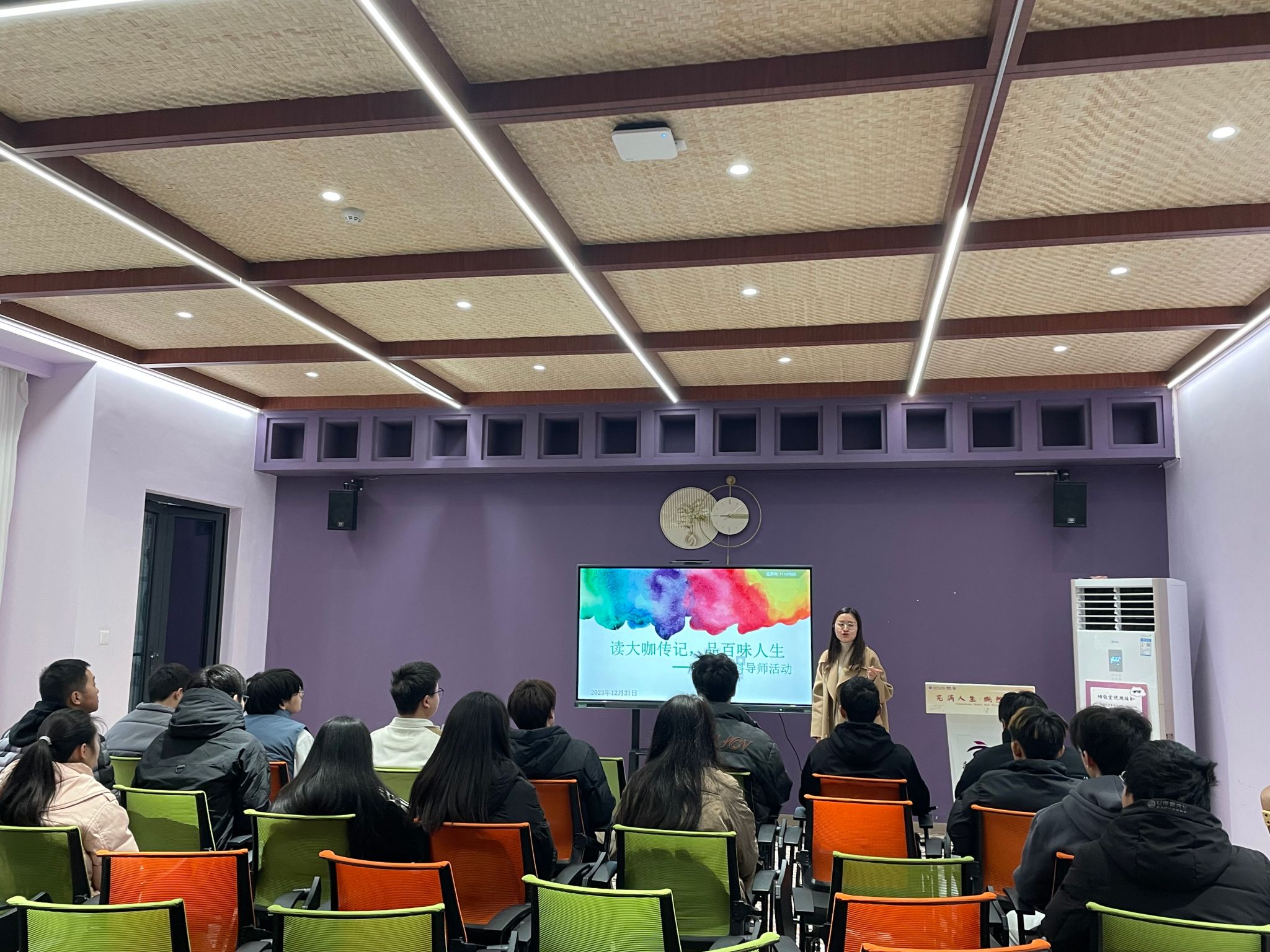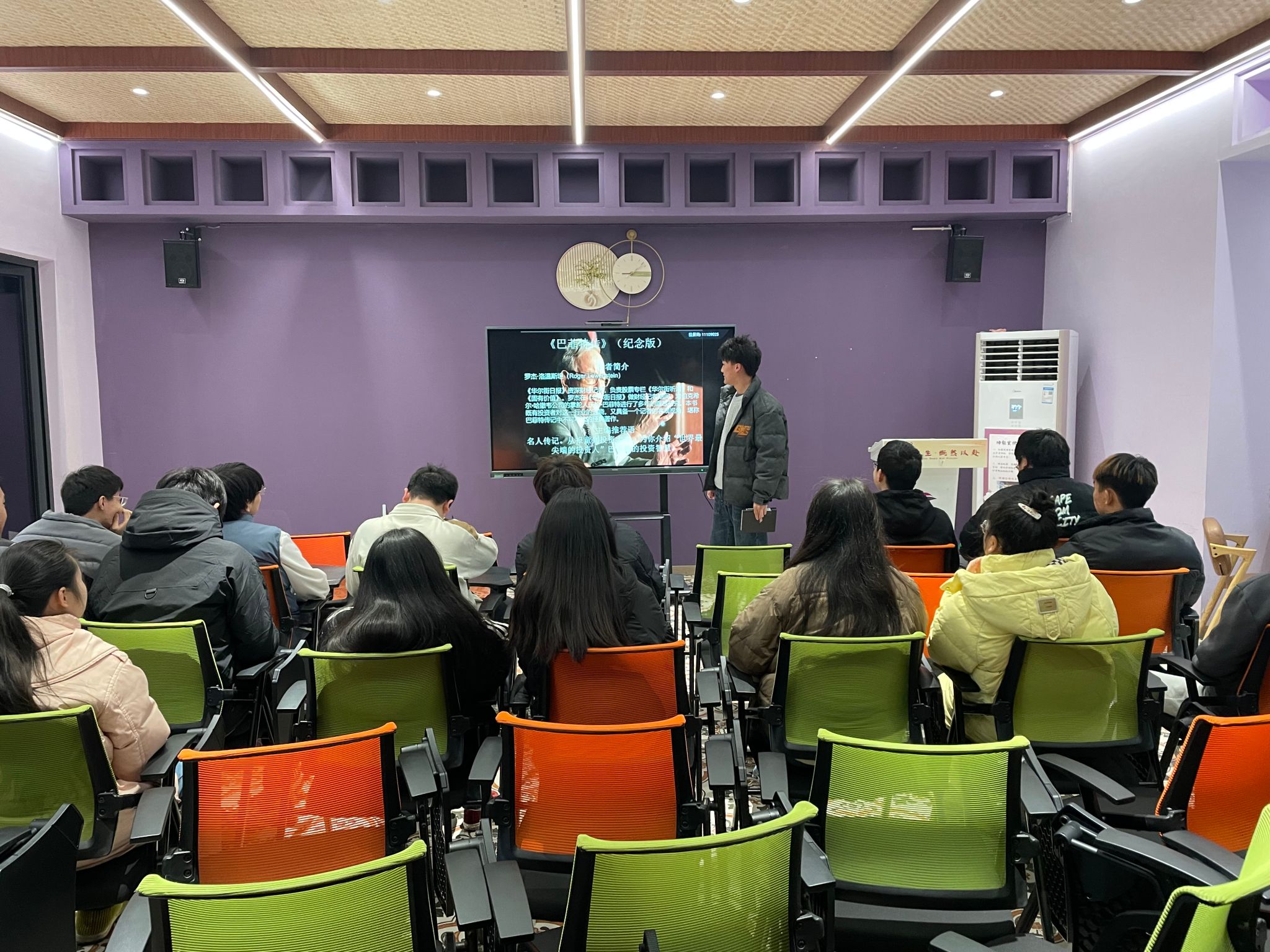 本次大咖阅读分享会分两个小组进行,瞿鑫宇小组分享了《巴菲特传》,给大家讲述了巴菲特充满传奇色彩的投资策略、人生哲学和管理智慧等,以及他如何由一个奥马哈报童成长为一个投资大亨。通过《巴菲特传》,同学们学习到了巴菲特做人、做事、做投资的基本原则,这些原则不仅体现了大师的智慧,而且可以帮助我们摆脱人生、事业、投资中的迷惑,找到一条确保长期成功的正确的道路。