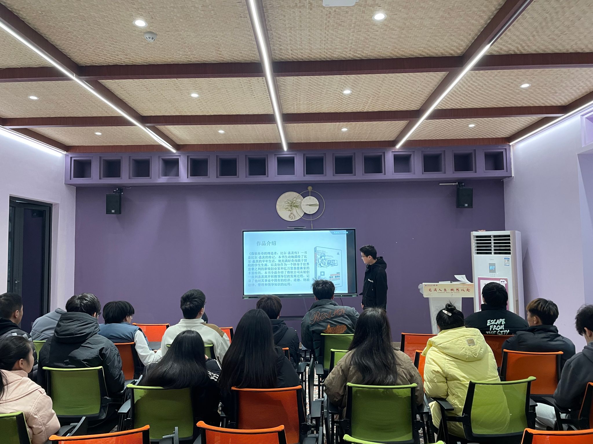 刘涵小组分享了《比尔·盖茨传》,给大家讲述了比尔·盖茨的早年生活和他充满好奇而敢于冒险的学生生涯,以及他作为一个跻身于世界富豪之列的新锐创业家和亿万富翁慈善家的丰富经历。