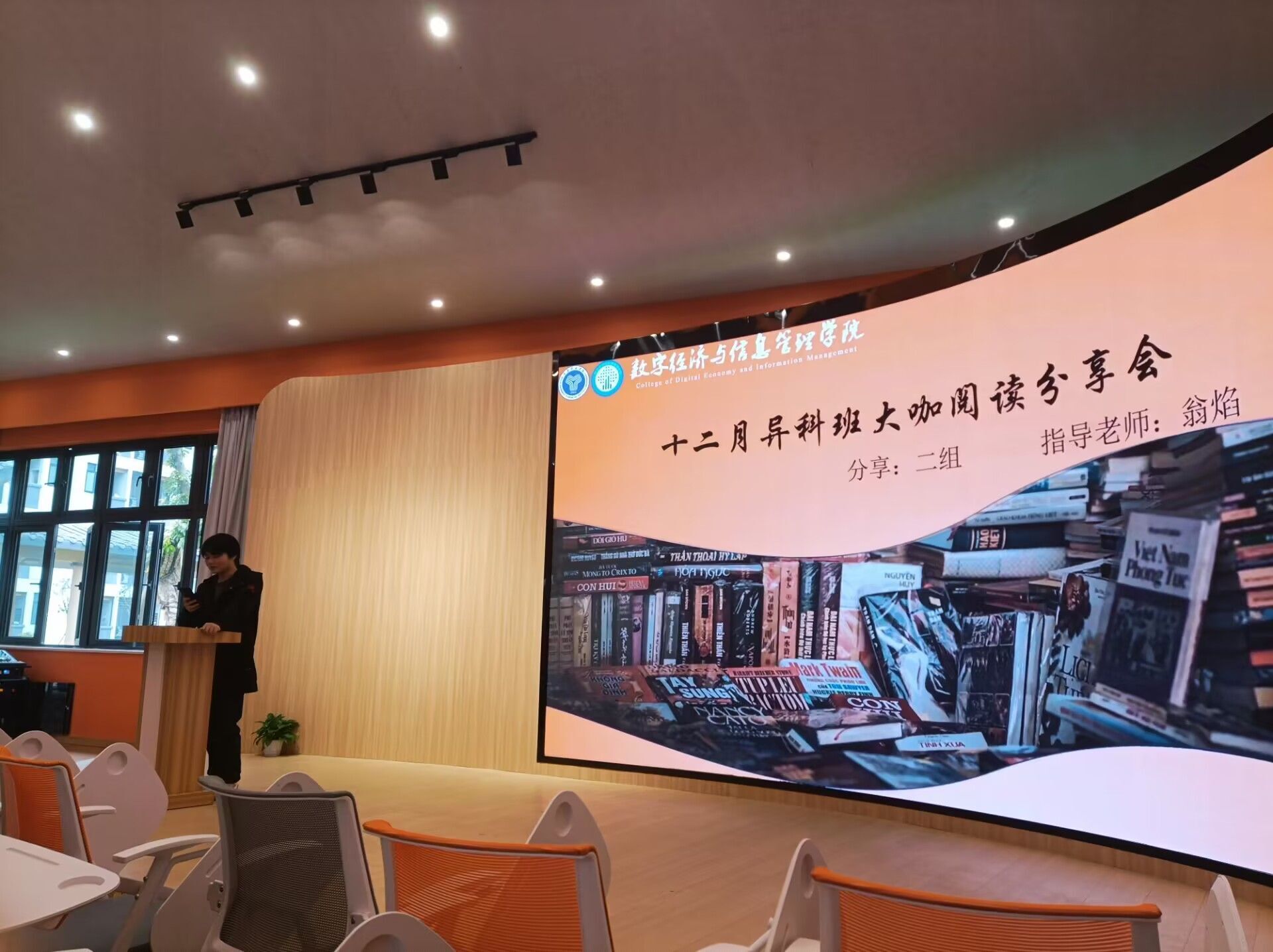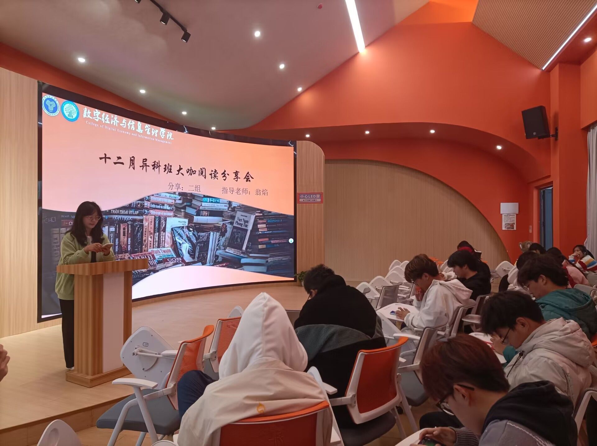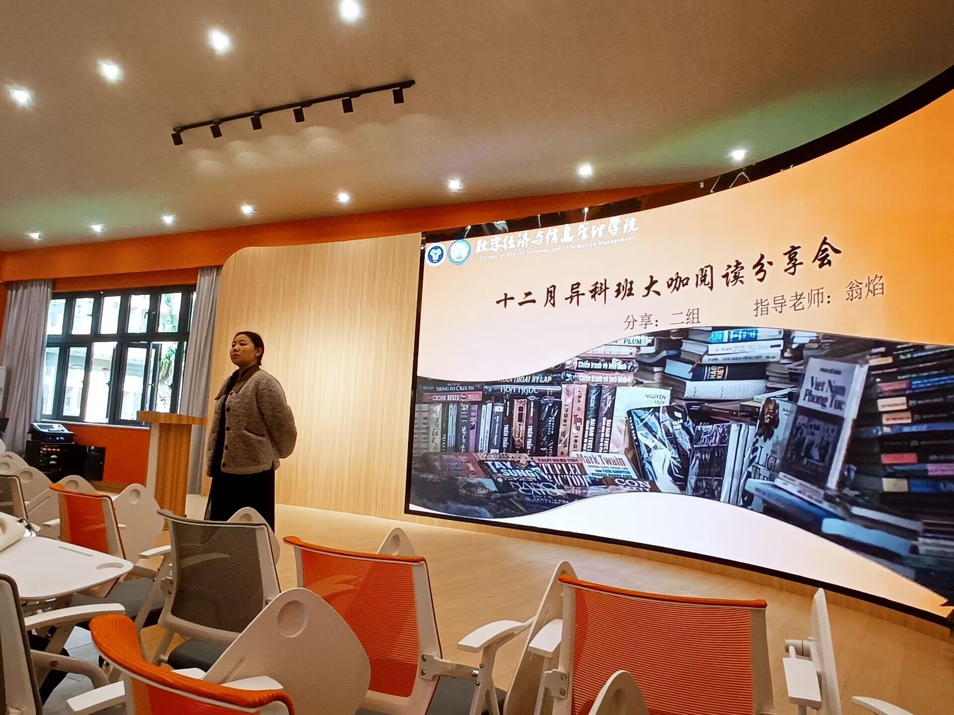 为进一步培养同学们的综合素质、培养具有扎实的专业知识、爱国精神、创新精神、实践能力和竞争优势的高素质应用型、技术技能型管理人才,在“学在学院,生活在书院”的双院制下,学校书香氛围浓厚,激励广大学生多读书、读好书,夯实人文基础、提高专业素质,培养良好的学习校风。特此翁焰老师带领异科班同学于12月14日在古剑书院含光报告厅进行了大咖阅读感悟分享会。