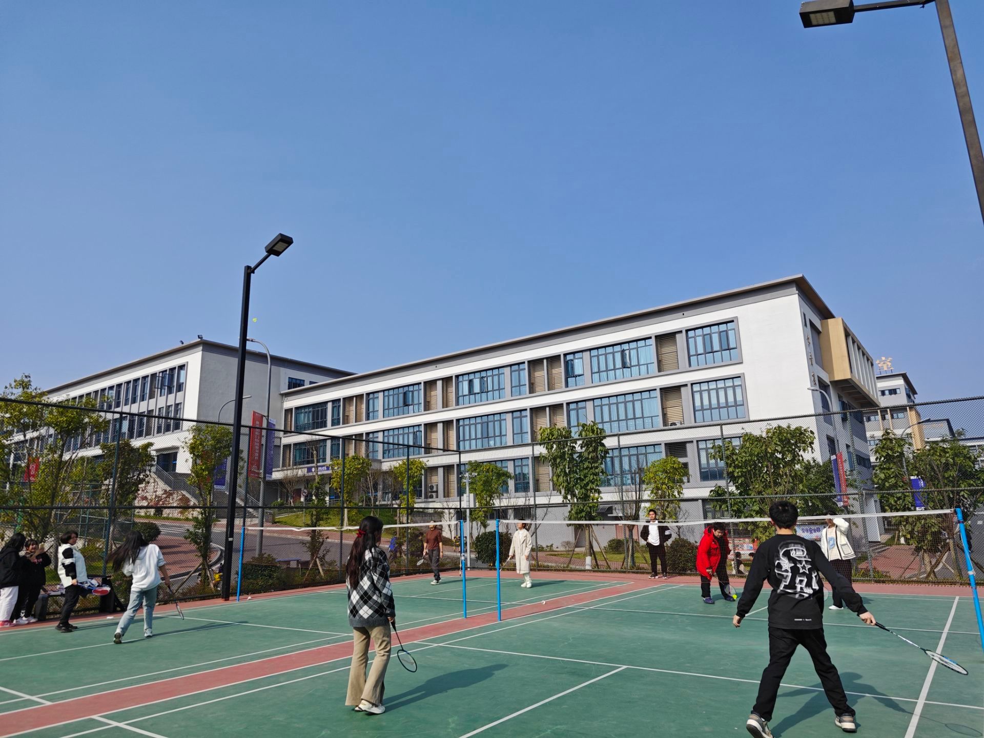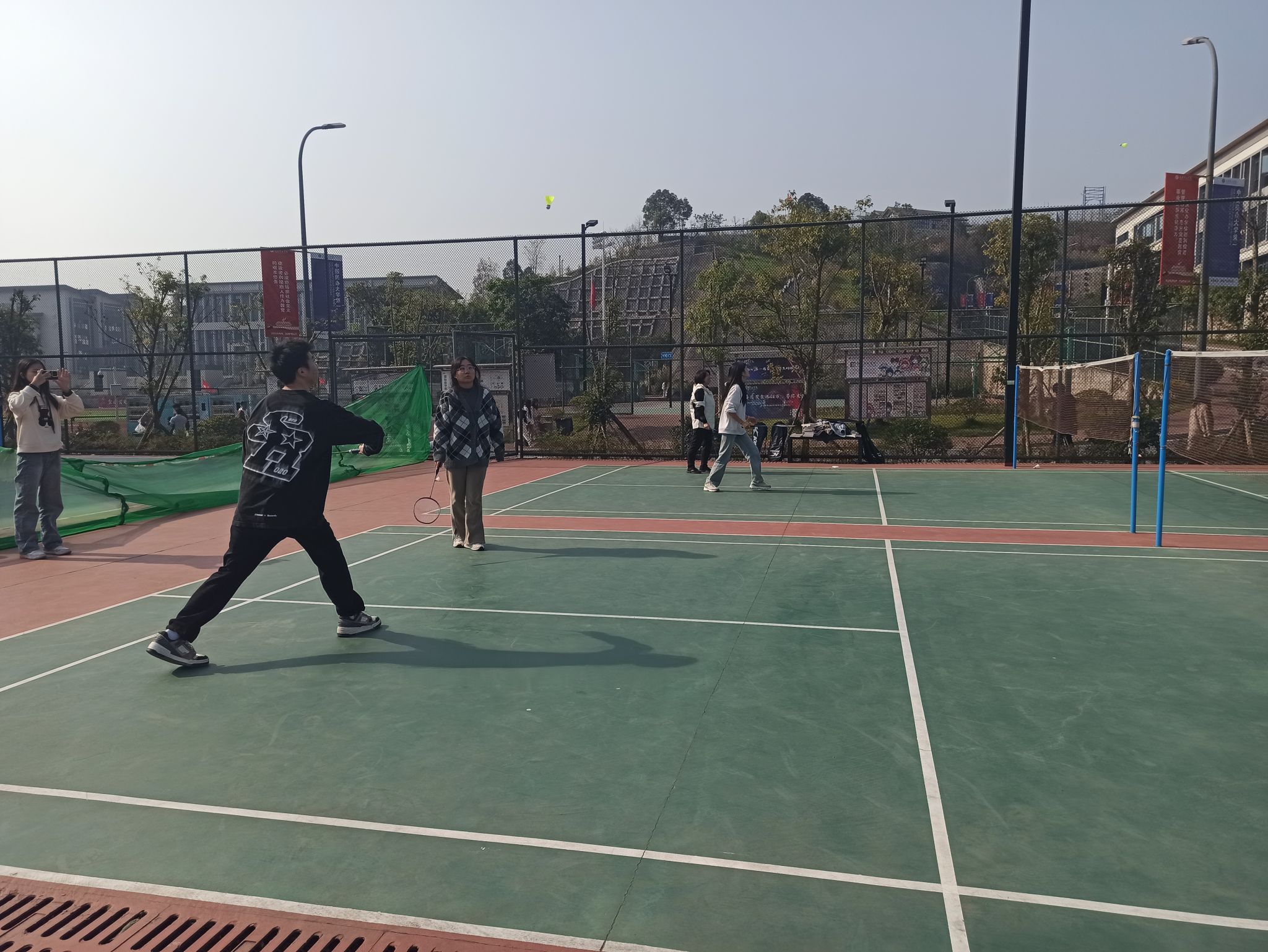 为了提高学生们的身体素质,加强学生们的体育锻炼,并且促进学生与老师的互动与交流,由杨晓红老师和胡蓉老师带领的两个异科导师班的学生们,在2023年12月13日下午,于羽毛球场组织了一场羽毛球友谊比赛活动。活动在老师们与同学们积极参与下顺利举行并完美落幕。羽毛球是一项室内、室外都可以进行的体育运动。依据参与的人数,可以分为单打与双打,及新兴的3打3。通过打羽毛球不但提高视力,燃烧卡路里还可提高平衡力,可谓益处多多。