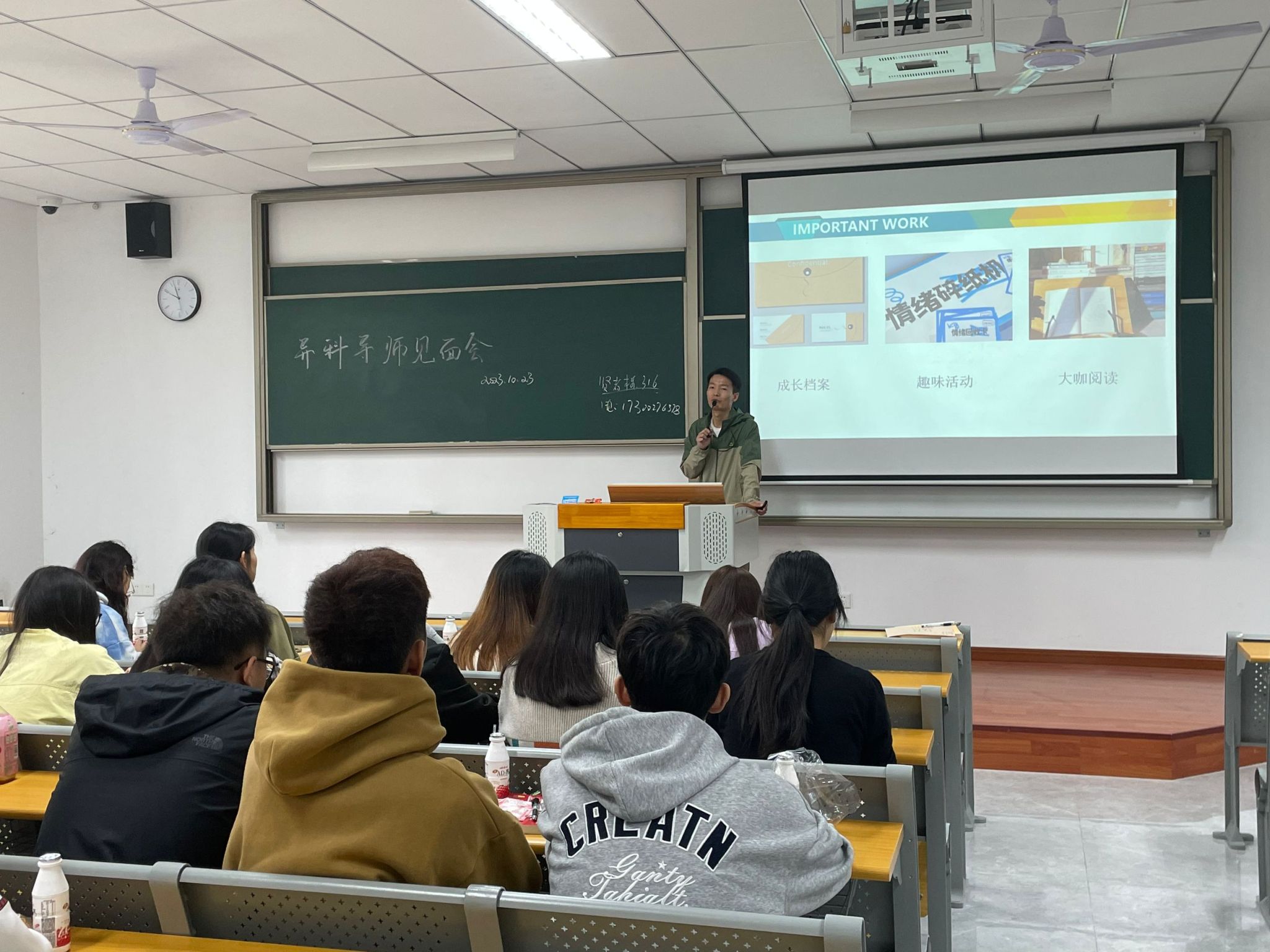 接着,王老师向同学们具体介绍了工作计划和安排,他将为每一位同学建立成长档案,对同学们进行个性化指导和全过程沟通,关注同学们的学习、生活和心理状态。每个月力争举办2次室内或户外活动,在活动中促进同学们各方面的技能成长。
