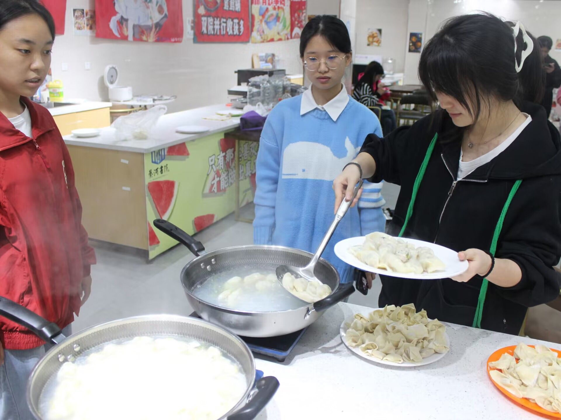 美食不在于外观,而在于用心。亲手做的美食有种魔力吸引着自己,它会使自己的自豪感达到顶峰。当抄手出锅时,所有人都迫不及待拿着自己的秘制调料去拌炒手,当抄手下肚时同学们的脸上都露出了满足的笑容。此次共享厨房活动不但提高了同学们的动手能力,更是让同学之间情谊更加深厚,增强了集体的凝聚力。