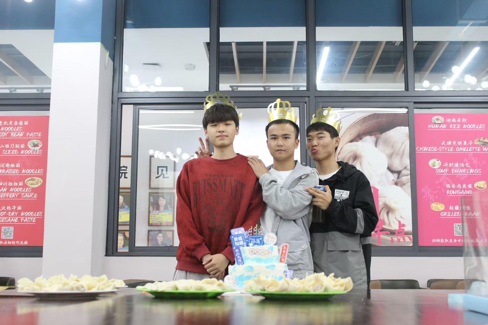 金秋十月,在煮抄手的过程中,导师还特意为在十月过生日的同学开展生日会。突如其来的惊喜让三位十月过生的同学喜笑颜开。导师准备了生日蛋糕,全体同学献上了生日歌画面其乐融融,过生的同学也默默许下生日愿望愉快地度过了这个特别又难忘的20岁生日。