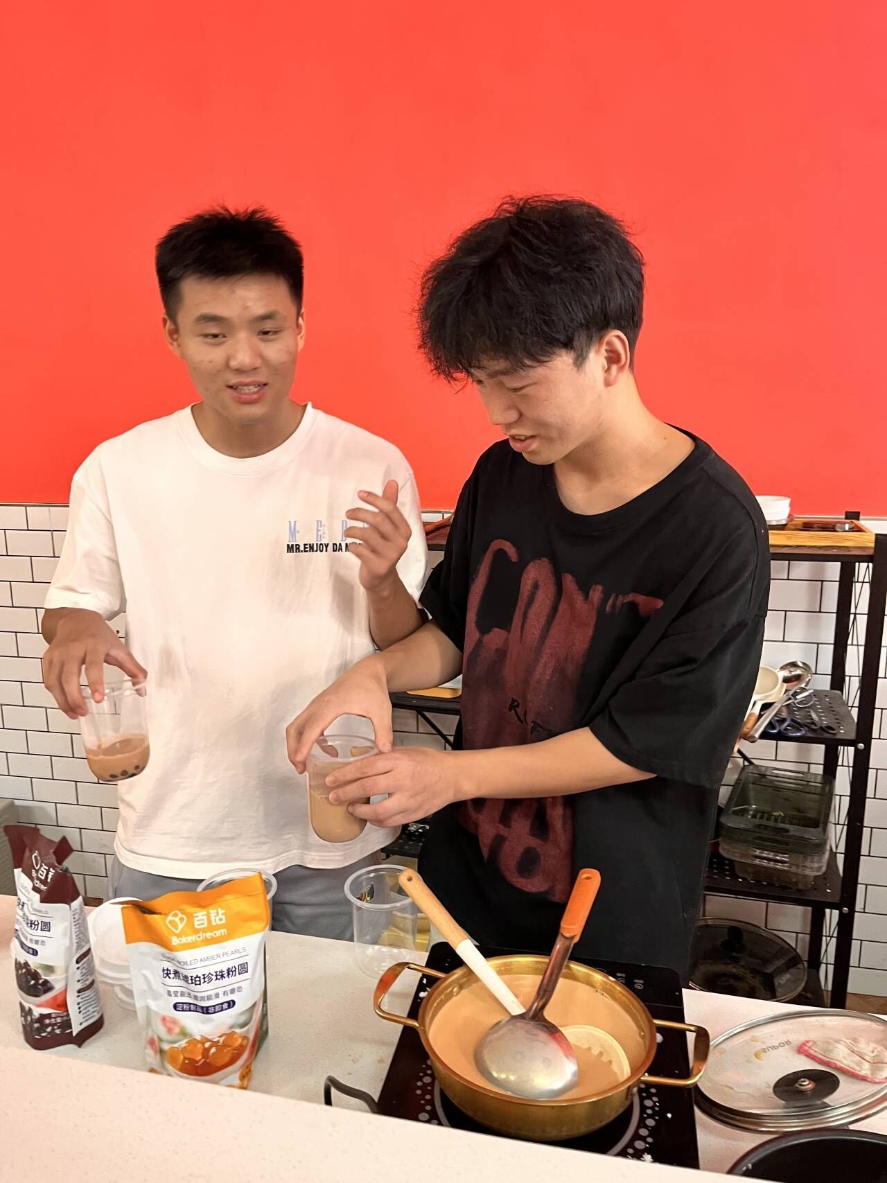 奶茶代表着温暖和甜蜜,在凉爽的深秋喝上一杯自己做的奶茶,是不是很有幸福感呢?为了将温暖与幸福传递给异科的学生们,同时锻炼学生们的动手、动脑实践能力。吴卉玲异科导师小组成员于2023年10月18日下午2点至4点,在玉棠书院半糖煮艺烘培坊开展“浓浓奶茶香,绵绵师生情”自制奶茶活动。此次共有7位成员以及异科导师参与。