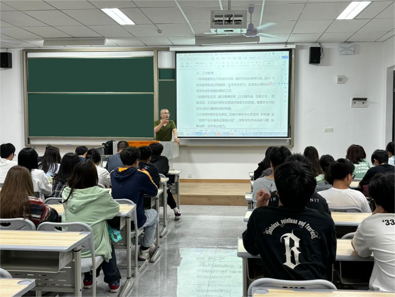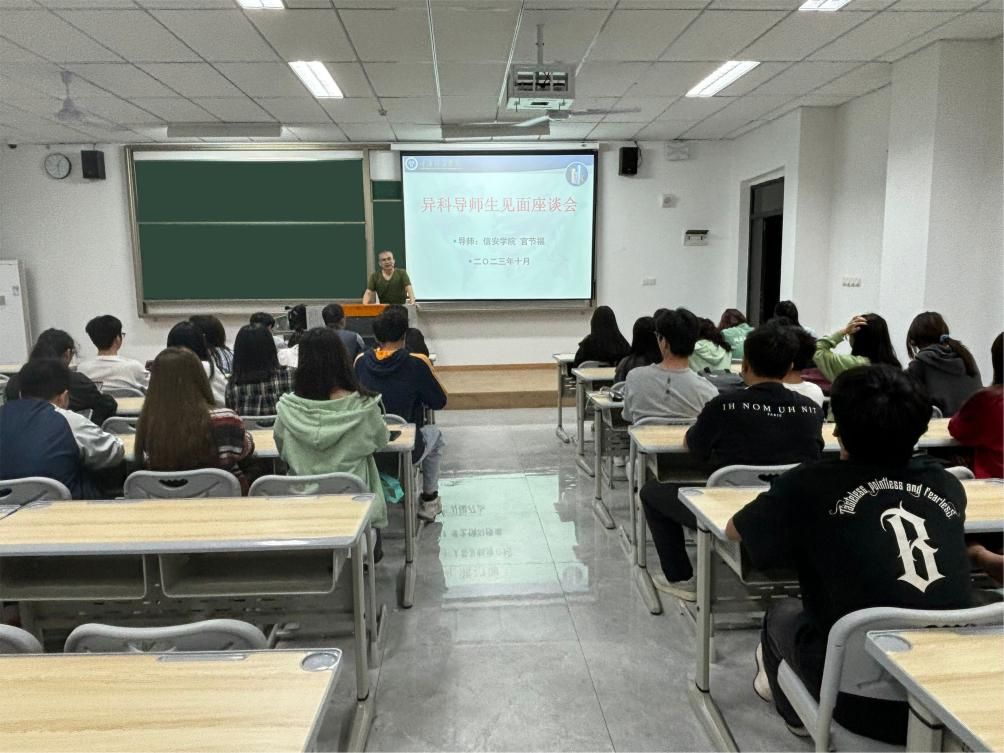 见面会伊始,官老师向同学们进行了学校异科导师制度的详细解读。官老师表示学校的异科导师制度是践行我校“四位一体双院制”人才培养模式的具体举措,是“四位一体”的交叉融合的极致化体现,具有明显区别于其他高校的特色性和创新性。异科导师制是“以学生发展为中心”,将为同学们提供探索、定位自己发展方向的平台,鼓励同学们积极参与课外“信息产业大咖阅读”、社区服务、学科研究项目和竞技比赛等活动,从而激发个人的兴趣和潜能,达到全方位的成长。