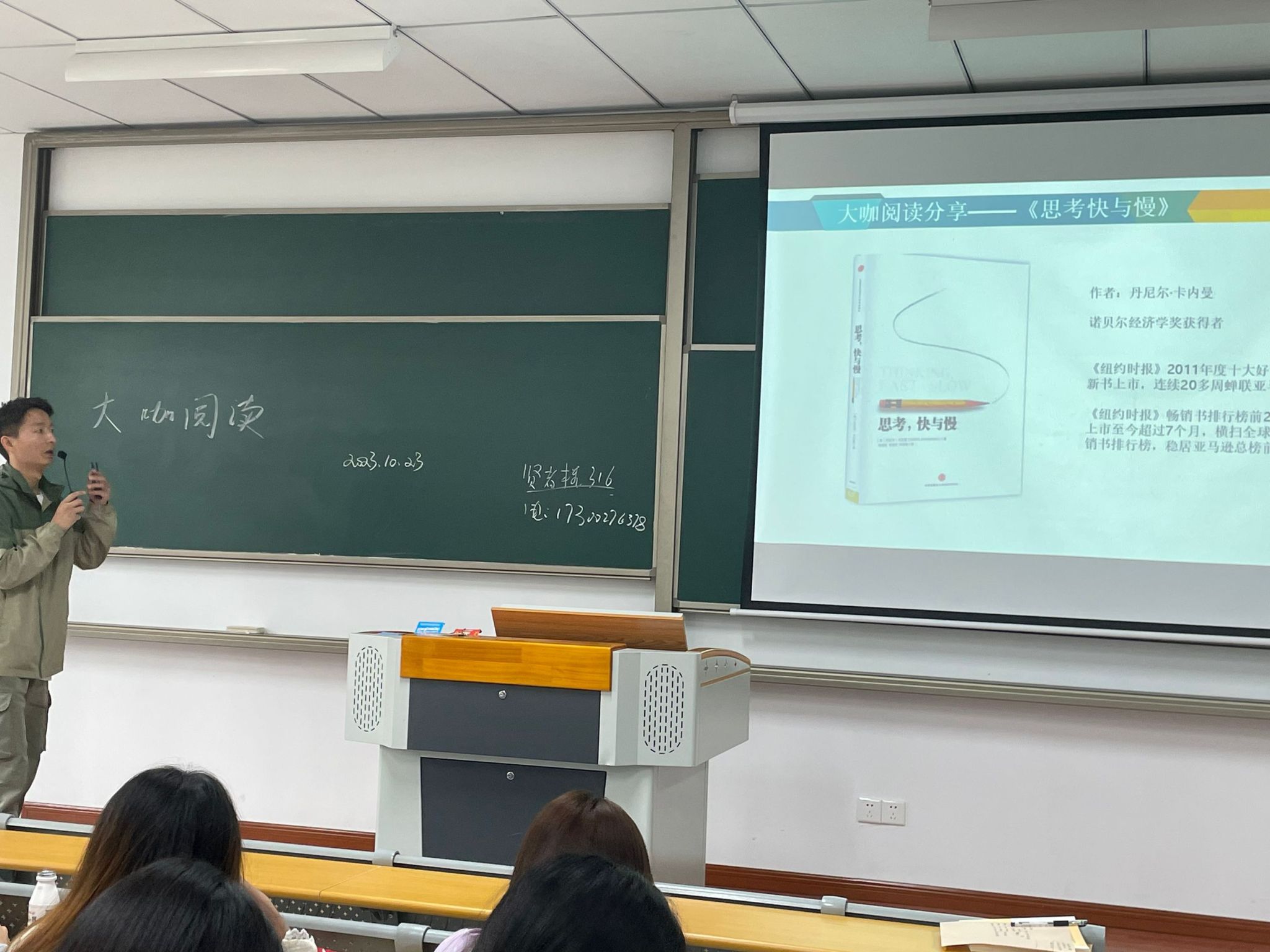 王燚老师热情的向同学们推荐了丹尼尔·卡内曼所著的《思考,快于慢》。这本书曾被评为《纽约时报》畅销书排行榜前20名,上市7个月内,横扫全球各大畅销书排行榜,稳居亚马逊总榜前50名。王老师介绍道:“这本书讲人类的理性和非理性思考,人类都是有认知偏差的,而我们并没有自己想象的那么理性和客观,读完此书可以大大提高同学们的认知和决策质量。”