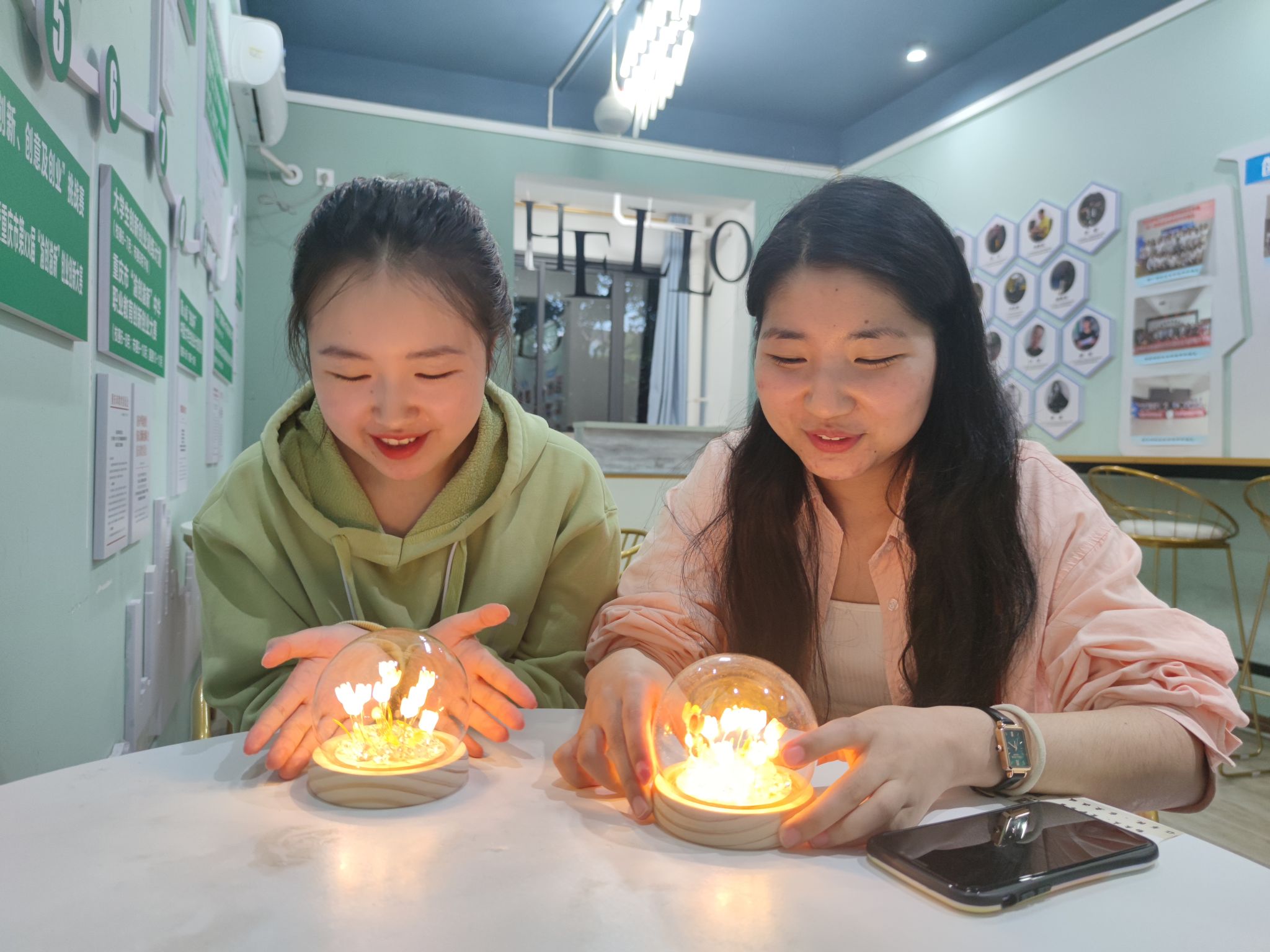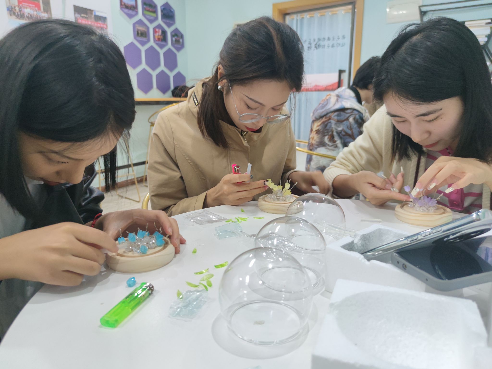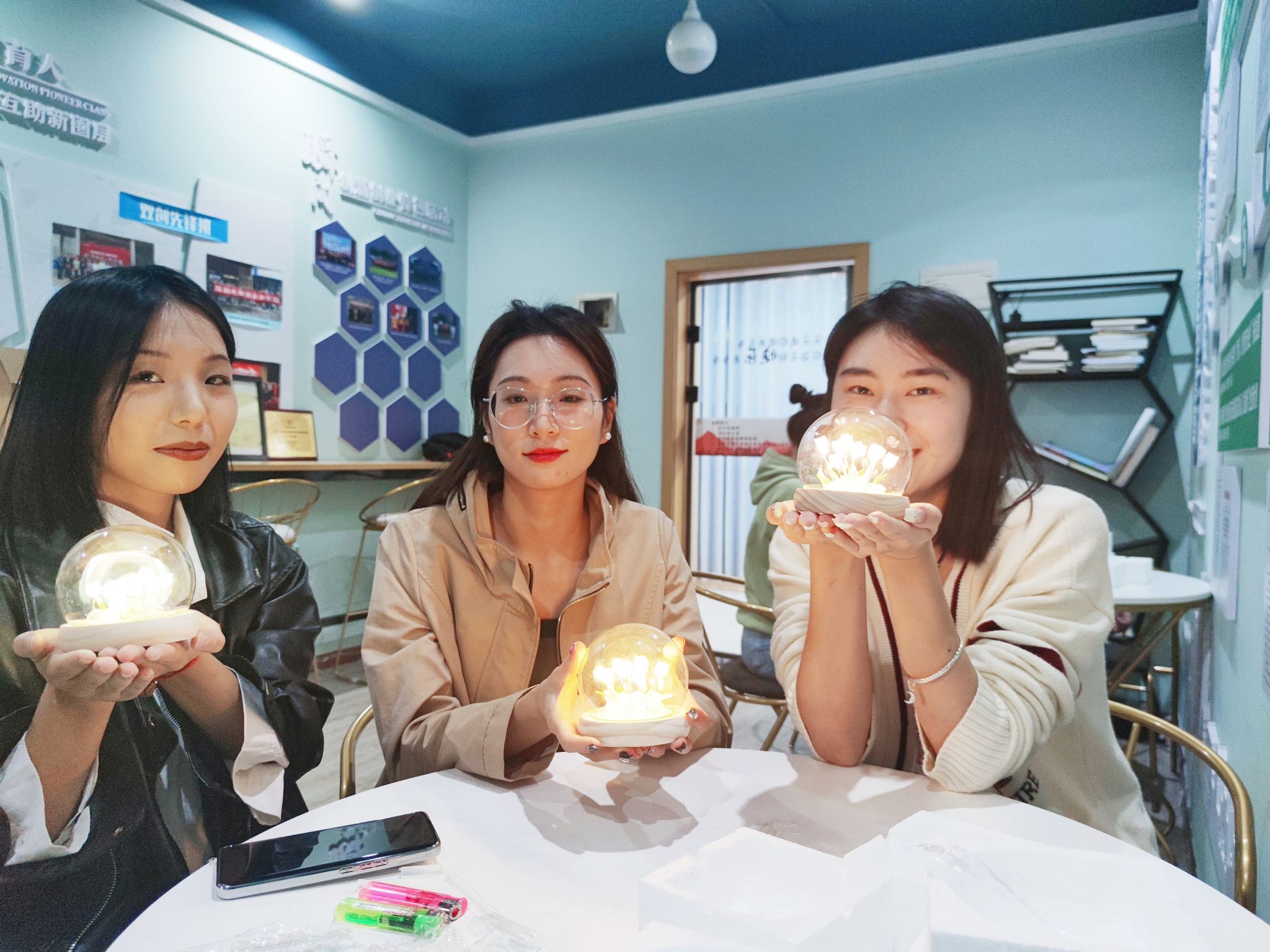 手工制作活动是一种非常受欢迎的放松和娱乐方式,本次手工制作的是郁金香小夜灯,考虑到大家的喜好差异,为同学们选择了不同颜色的郁金香。虽然有制作教程视频,但实际操作起来并不简单。同学们拿到原材料后,两三个一组,开始研究具体步骤,接着慢慢摸索着动手制作;中途遇到困难时,大家团结协作、互帮互助;在面对自己不太满意的作品时,大家都积极的予以鼓励和赞赏;最终,七位同学都顺利完成了自己的郁金香小夜灯,并开心的和自己的作品合影留念。