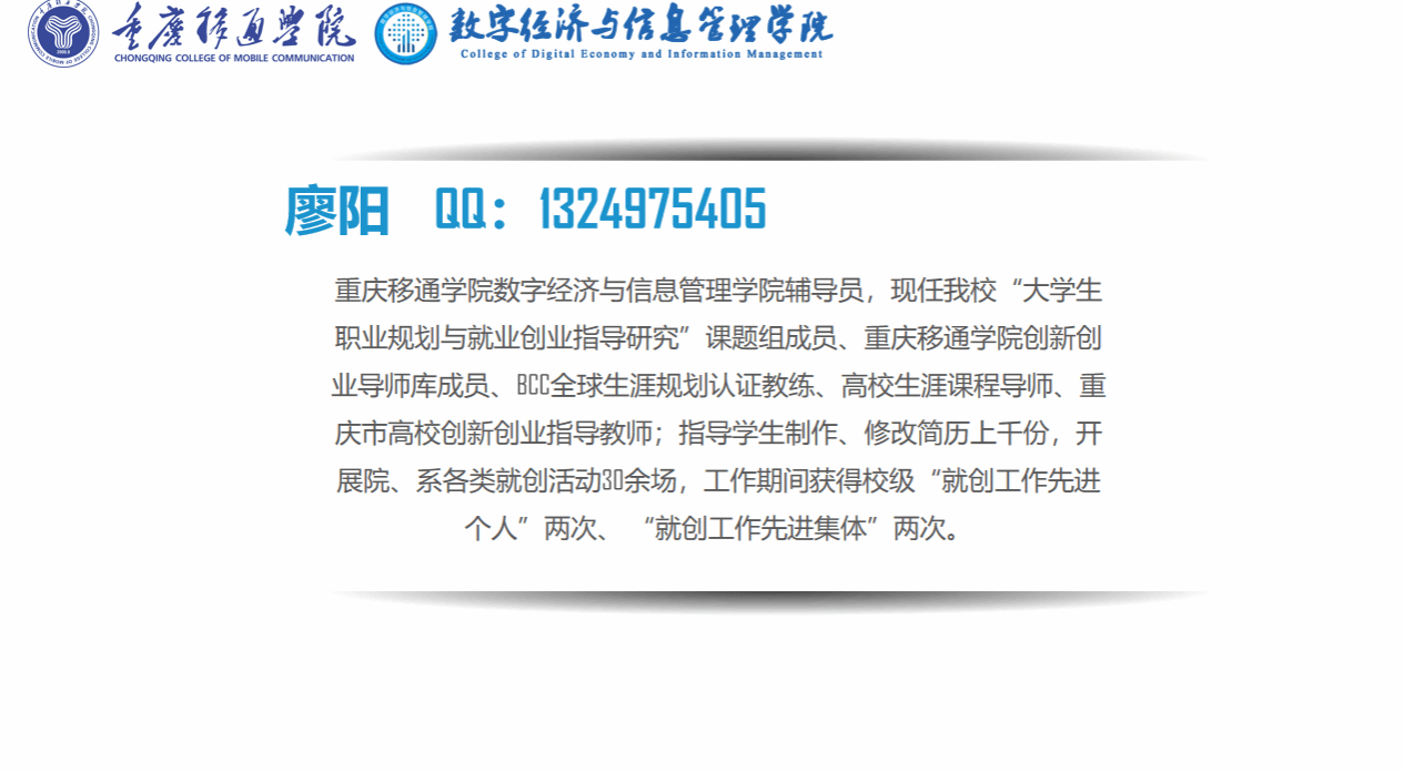 廖阳老师以“小简历,大制作”为主题给同学们讲解了“简历到底是什么”和“为什么我们需要制作一份个人简历”。并且,他给同学们讲解了,简历在求职就业时会起到的关键作用,为同学们充分的解答了简历制作的意义。