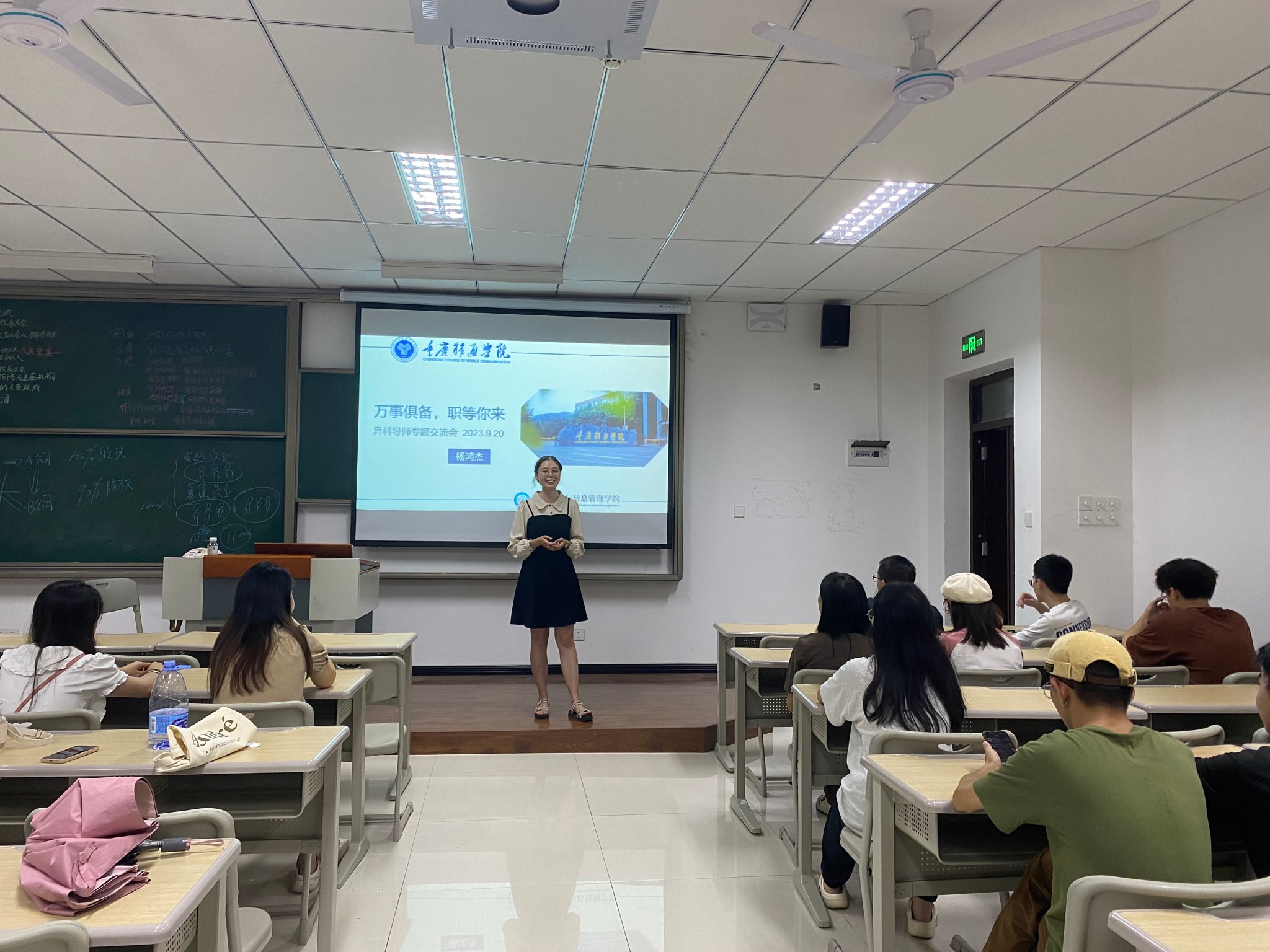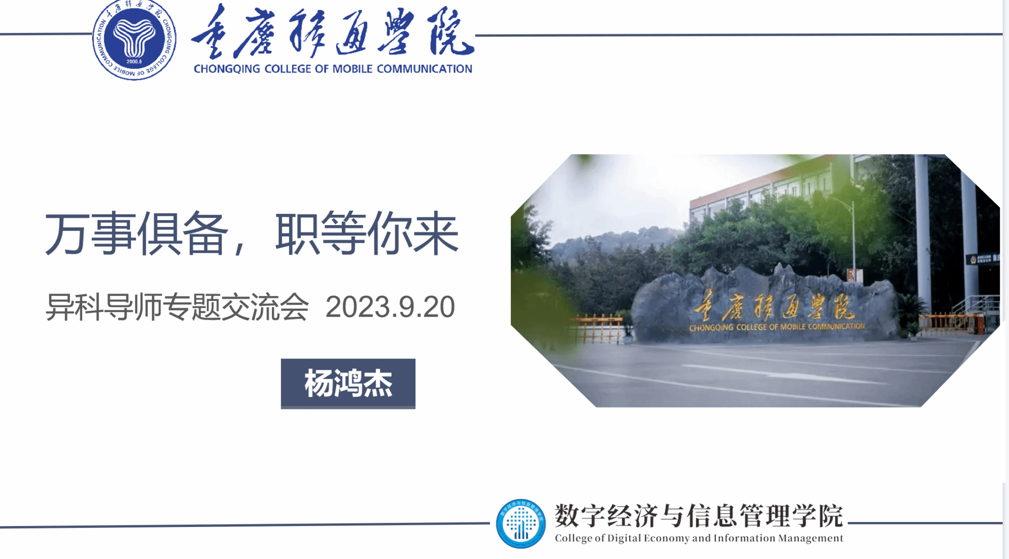 为培养异科学生的职业素养,助力学生提升就业竞争力,引导学生树立积极、乐观的求职心态,9月20日下午15:00,异科导师杨鸿杰邀请数字经济与信息管理学院2022级大数据管理与应用专升本11、12班的同学们参加了“万事俱备,职等你来”就业专题交流会,共有18名异科学生参与了本次交流活动。