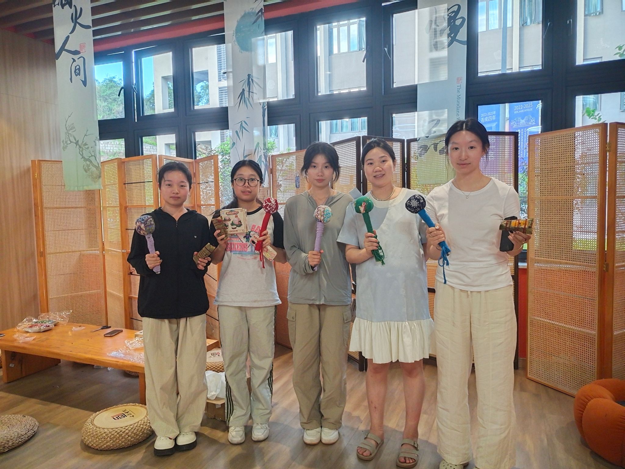 随后,师生们共同参与了一项特别的活动——制作艾草锤。在王陈导师的指导下,学生们用艾草、中药包和布料等材料,亲手制作出了一个个小巧精致的艾草锤。这不仅是一次动手实践的机会,更是对传统文化的一次深刻体验。学生们纷纷表示,要将这份亲手制作的艾草锤带回家中,作为端午节的特别纪念。