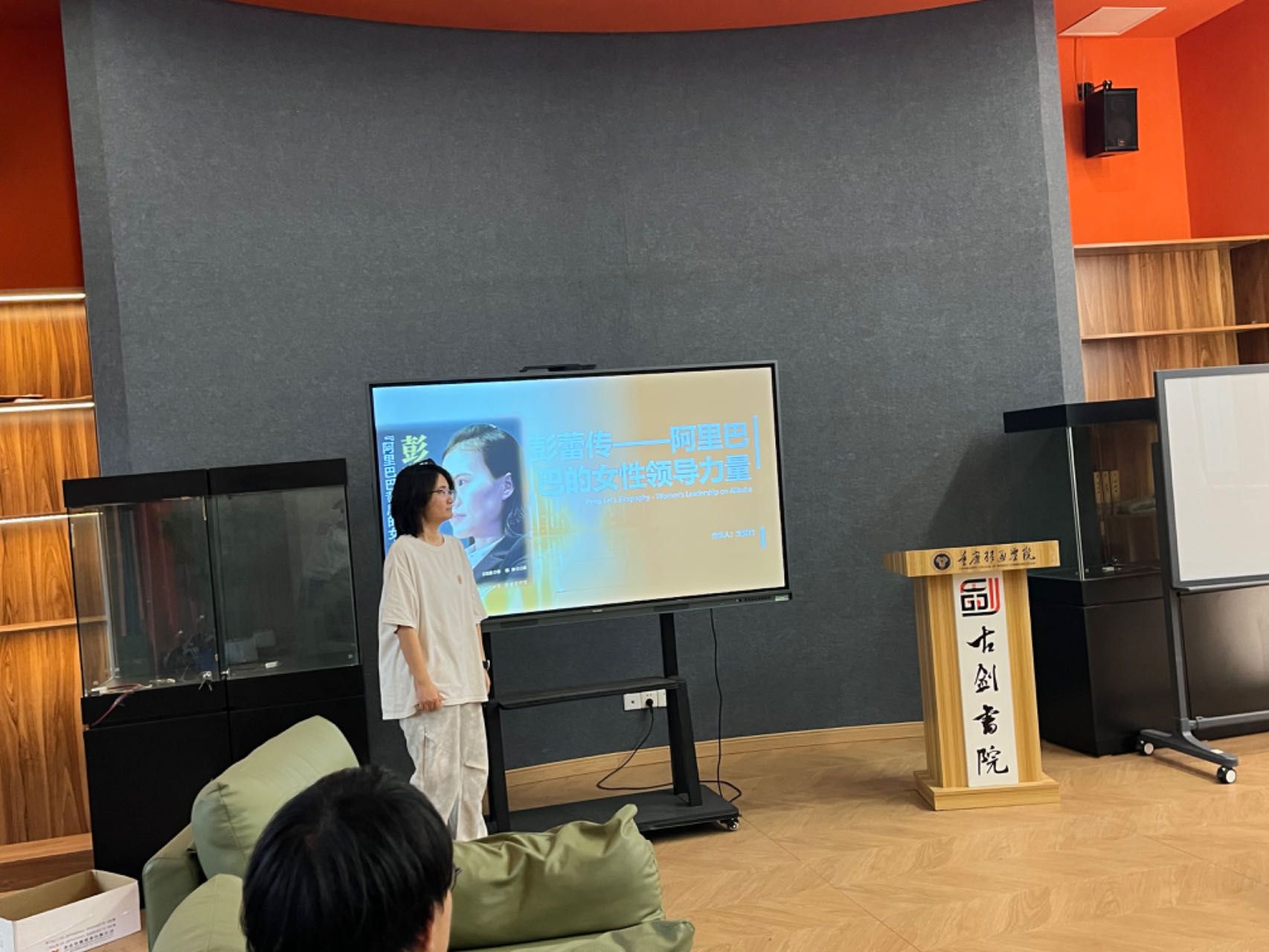 活动现场,文曼竹同学作为分享人,向大家推荐并解读了《彭蕾传》一书。她以生动的语言、详实的资料,深入剖析了彭蕾这位商业传奇人物的成长历程、创业故事以及卓越领导才能。从彭蕾初入职场的青涩到在阿里巴巴担任重要职位时的果敢决策,人文曼竹同学抽丝剥茧,将彭蕾的传奇经历一一呈现在同学们面前。