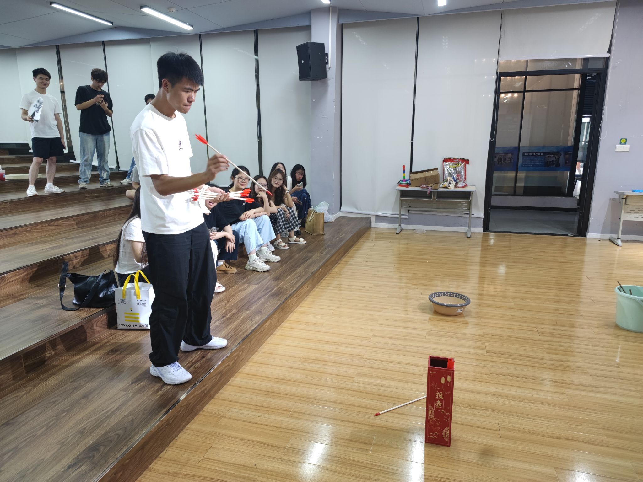 投壶游戏则让同学们体验了传统游戏的魅力,大家手持箭矢,瞄准远处的壶口,全神贯注地投掷,每一次成功投中都能赢得阵阵掌声。