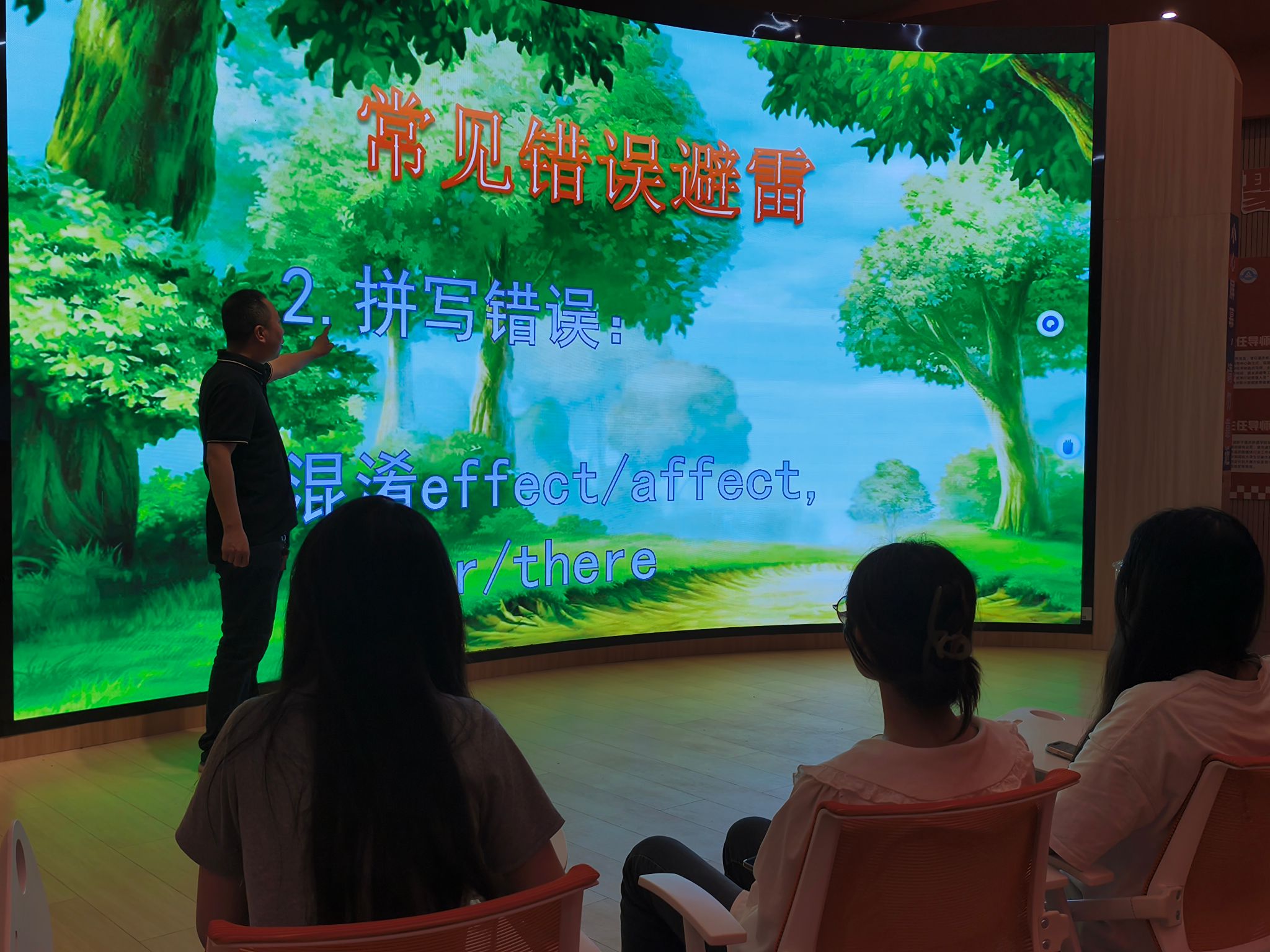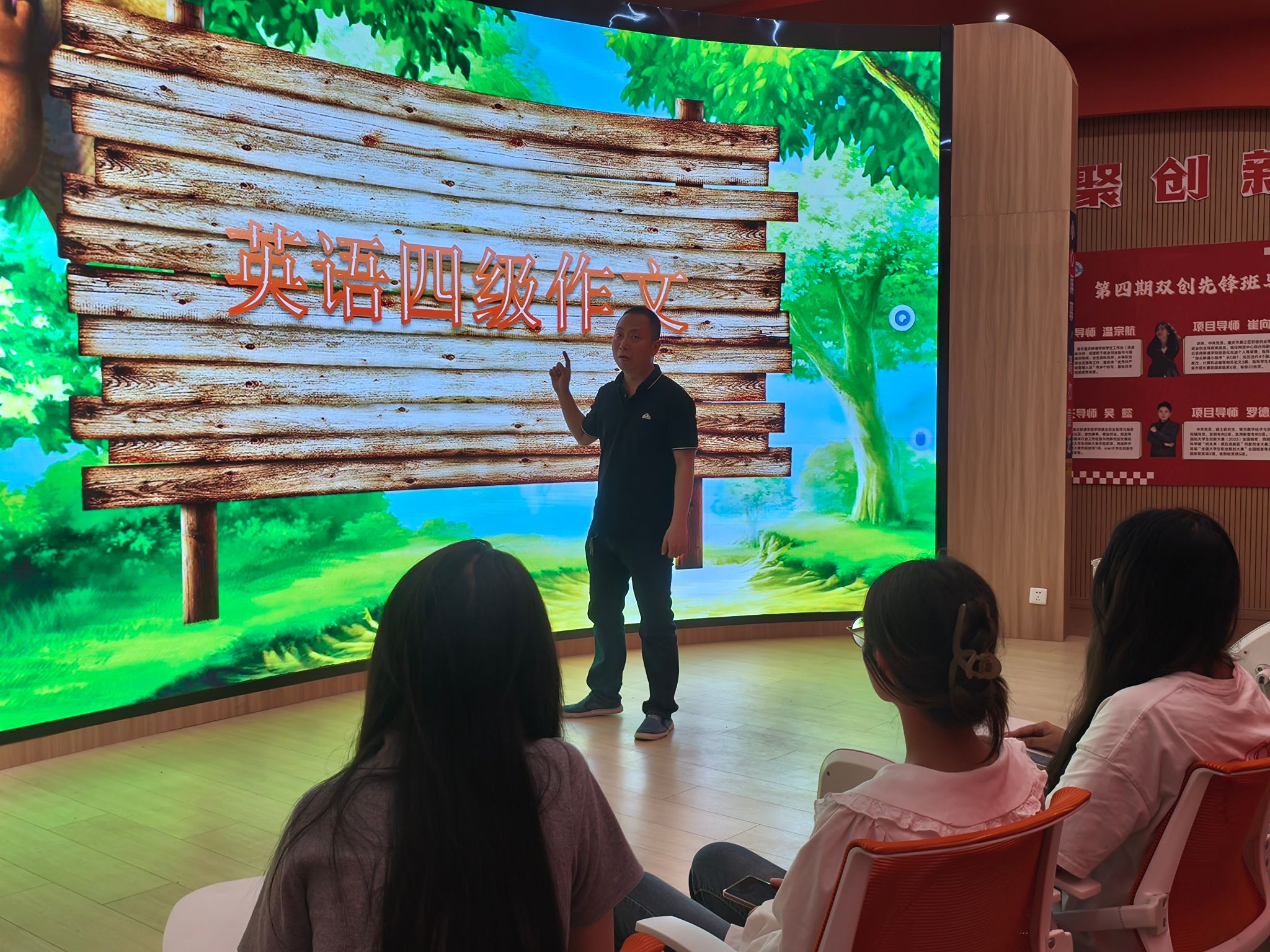 2025年6月10日晚上七点,异科导师徐政带学生参加创新中心组织的英语四级作文考前冲刺活动。这次英语四级作文考前冲刺活动所用的PPT课件和资料是异科导师徐政、甘振韬、谭琼、肖其宇四位老师一起整理的。徐老师既是异科导师,同时也是创新中心的老师,负责现场教学。英语四级作文考前冲刺活动在古剑书院的含光报告厅举行。
