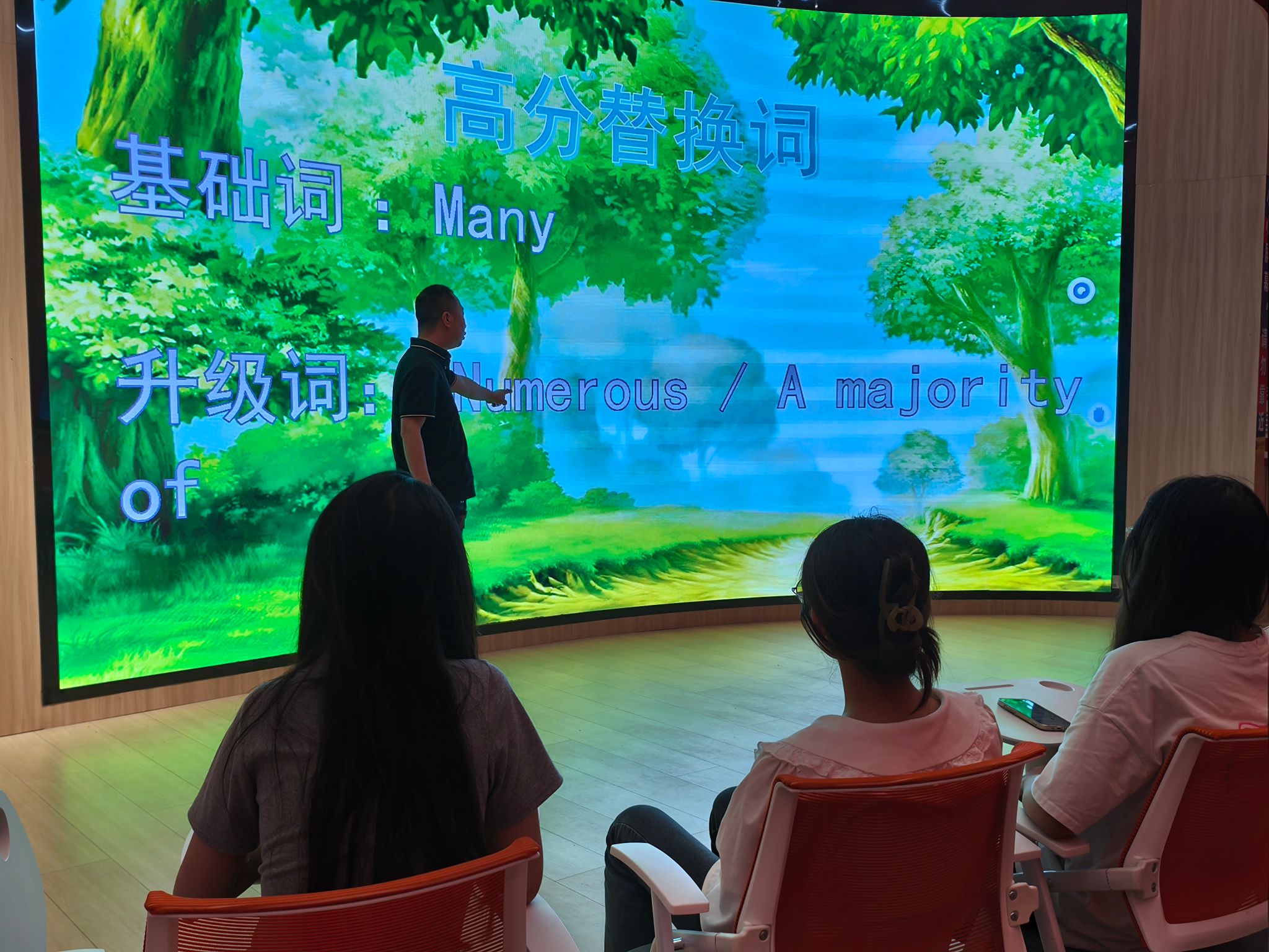 针对学生们普遍存在的词汇平庸问题,徐老师从几位老师整理的资料中挑选出了闪光句、闪光短语和高分替换词,并进行了详细的讲解和拓展。他不仅教授了词汇的读音、拼写和含义,还通过例句让学生们了解词汇的用法和搭配。同时,徐老师还鼓励学生们在课后多背诵词汇,多阅读英文文章,积累写作素材。