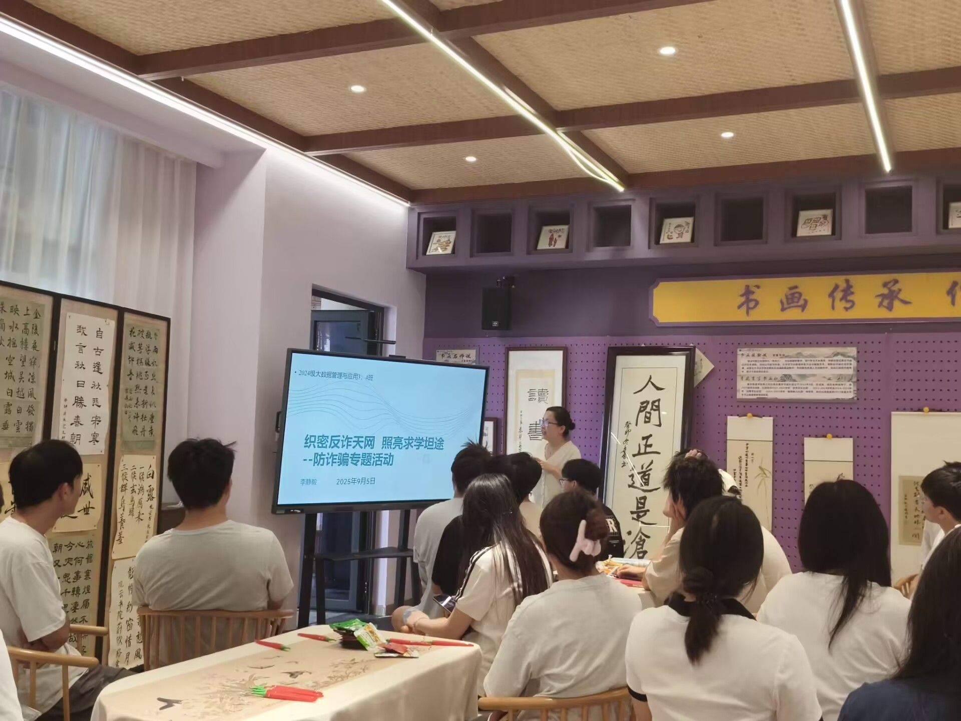 为落实全生异科导师制度,响应全生异科导师 “以学生充分发展为中心”的教育理念,异科导师李静毅携手2024级大数据管理与应用3、4班的同学门于2025年9月9日在观云书院.芒种华文书吧开展了一场以“织密反诈天网 照亮求学坦途”为主题的反诈骗宣传专题活动。通过案例剖析、知识讲解、应对指导等环节,为同学们上了一堂生动且实用的 “反诈安全课”。