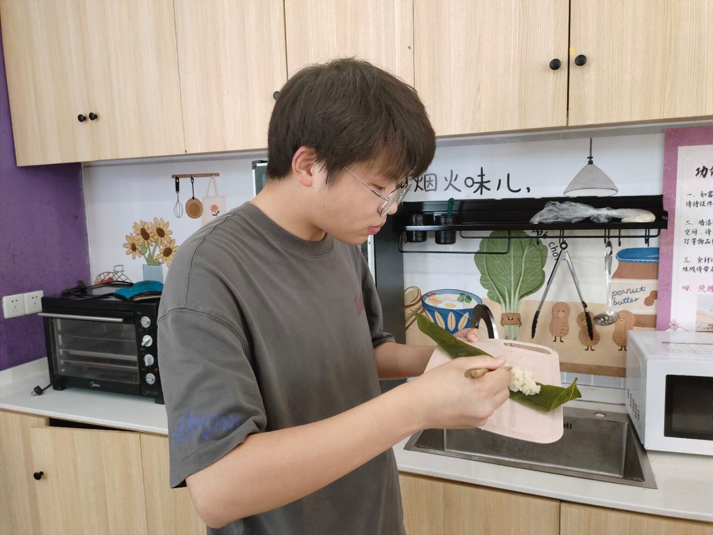随着一锅锅粽子入水烹煮,教室内升腾起蒸汽与期待,一小时后揭开锅盖的瞬间,粽香弥漫全场。同学们迫不及待地寻找自己包的粽子,互相点评“作品”的品相,当剥开青翠的粽叶,露出晶莹油润的糯米时,许多同学第一次体会到“自己动手,丰衣足食”的满足感。
