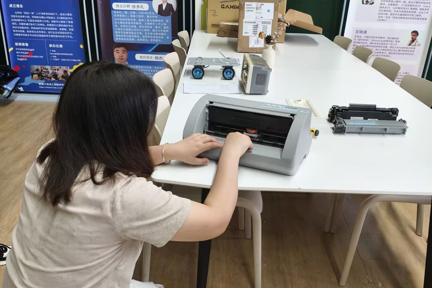 最后,徐老师还带领学生们拆开了针式打印机的外壳,清理里面的异物。“定期清理打印机内部的异物,可以保证打印机的正常运行,延长其使用寿命。”徐老师一边清理,一边向学生们讲解清理的要点。