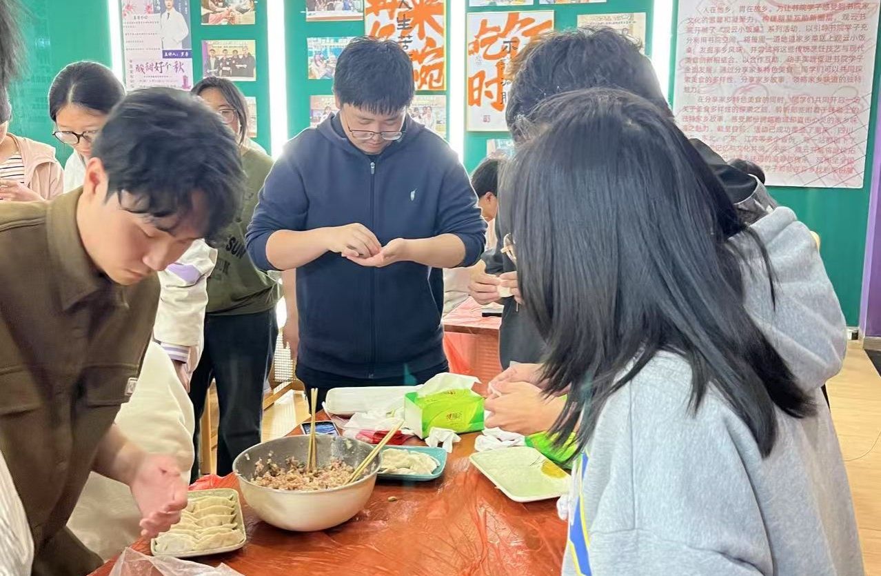 活动当天,导师与学生们早早来到活动现场,大家围在一起分工合作,有的和面,有的擀皮,有的包馅,忙得不亦乐乎。在一张张面皮之间,在一只只饱满的饺子中,学生们不仅体验到了劳动的乐趣,也在欢声笑语中拉近了彼此的距离。