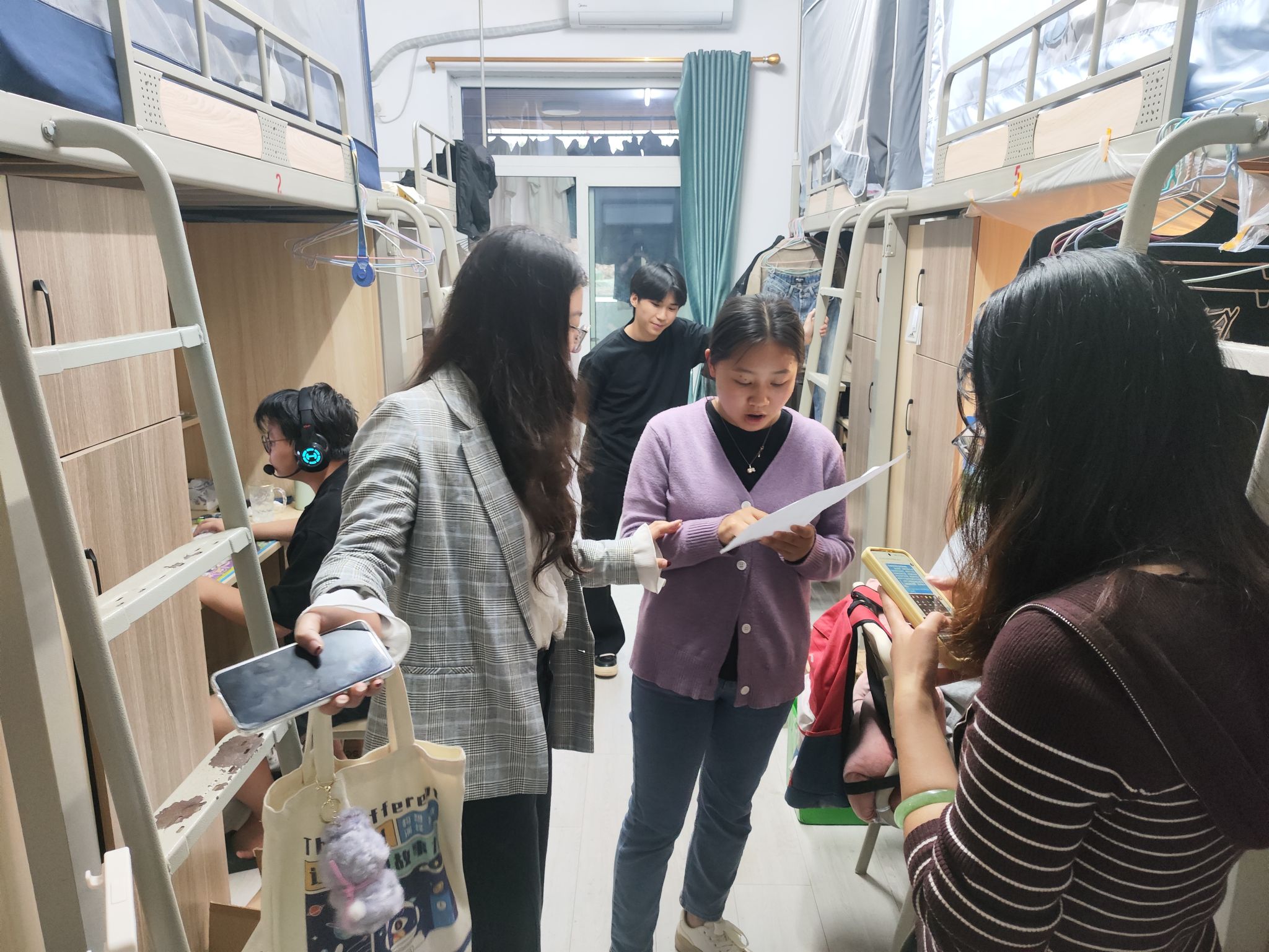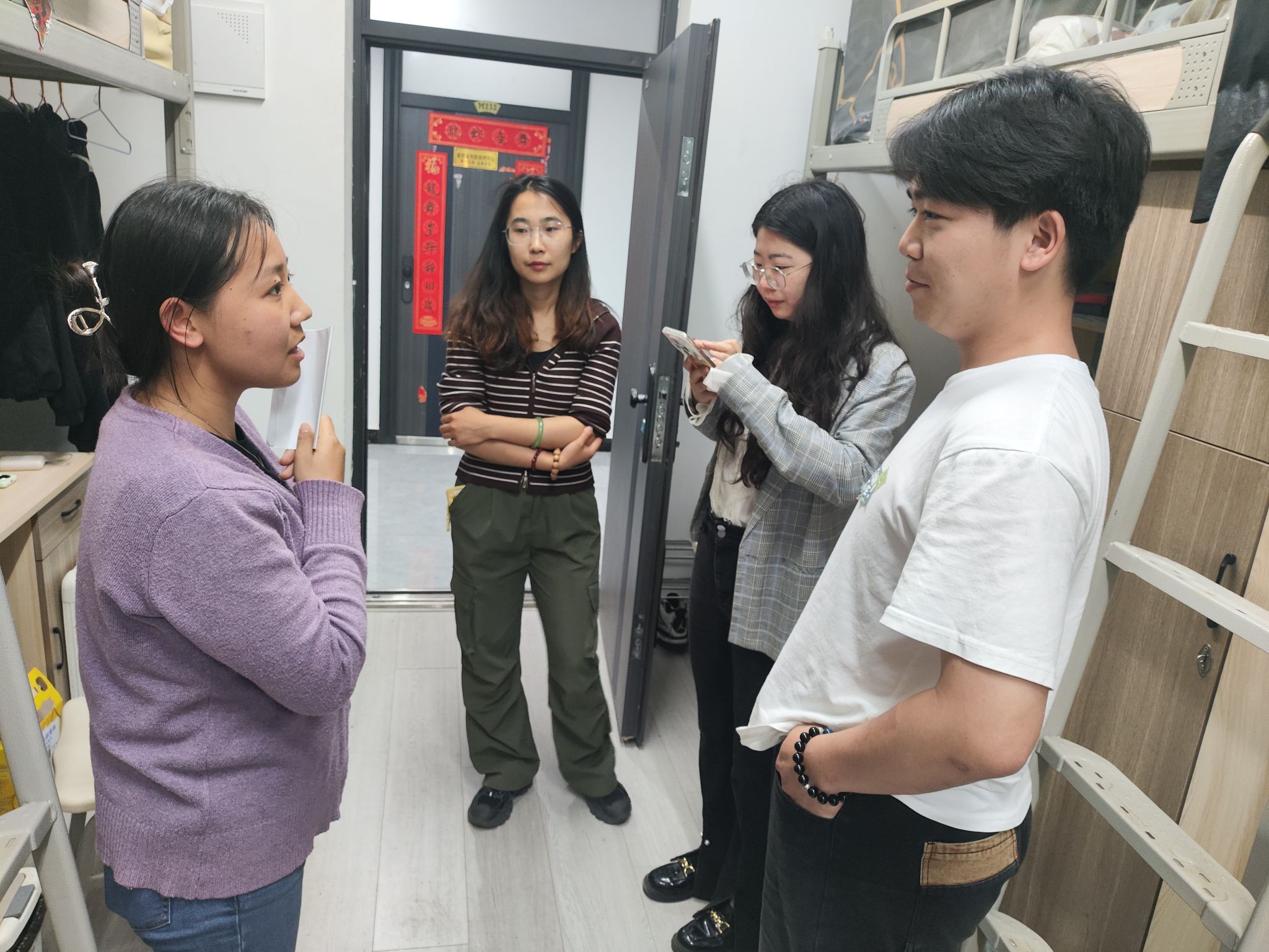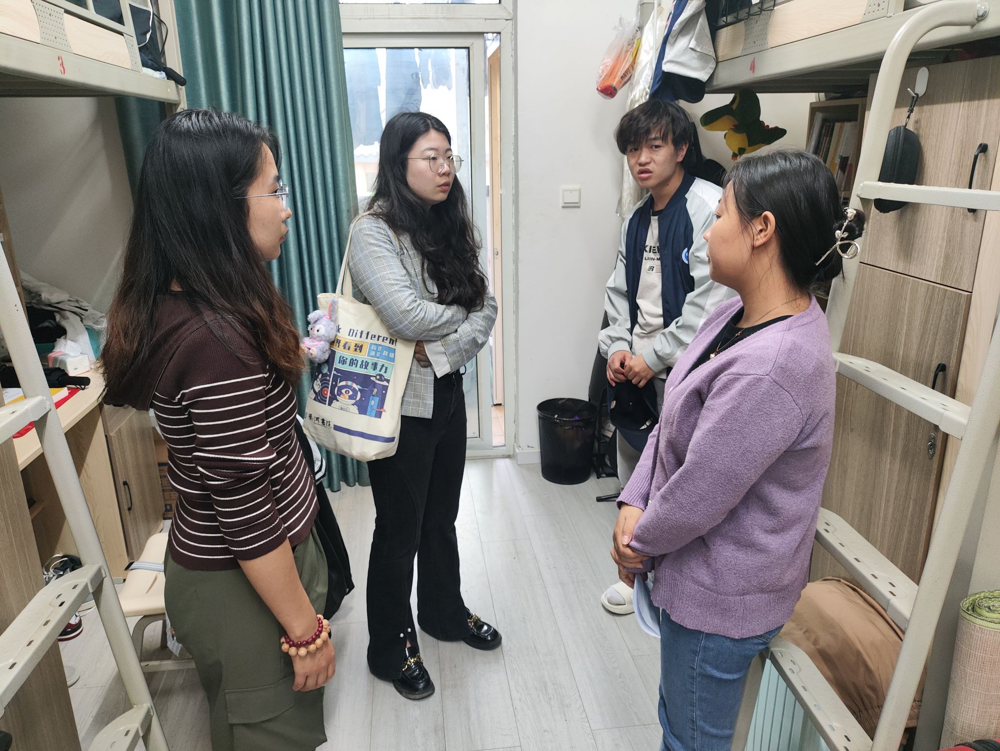 在关心学生学习和生活的同时,导师们也在认真查看学生宿舍的安全。导师们对每个宿舍的用电安全进行了细致检查,查看是否存在私拉乱接电线、使用违规电器等情况,强调安全用电的重要性。除了用电安全,导师们还关注了宿舍的卫生状况。他们按照学校的卫生标准,对宿舍的地面、床铺、书桌、卫生间等区域进行了全面检查,对卫生情况良好的宿舍给予了表扬,对存在卫生问题的宿舍提出了整改意见,并鼓励同学们养成良好的卫生习惯,共同营造整洁舒适的宿舍环境。