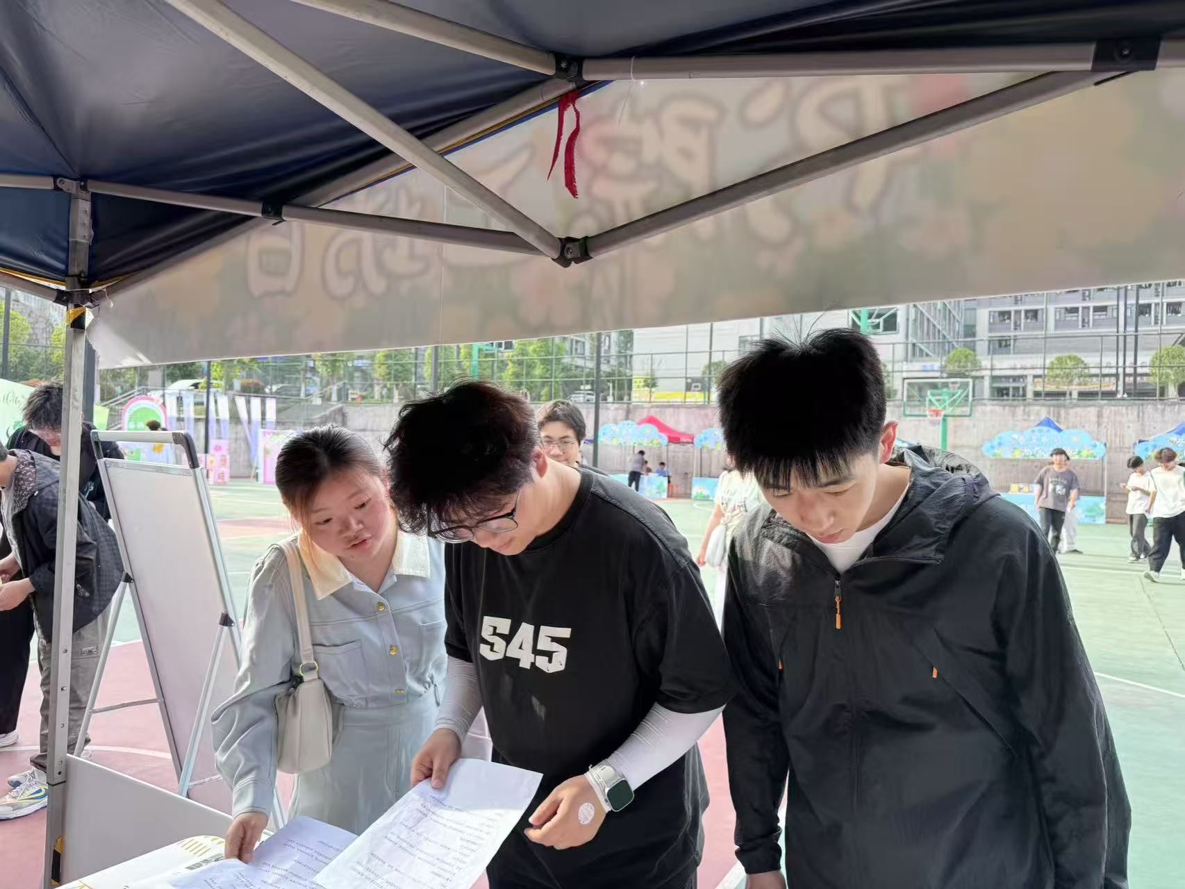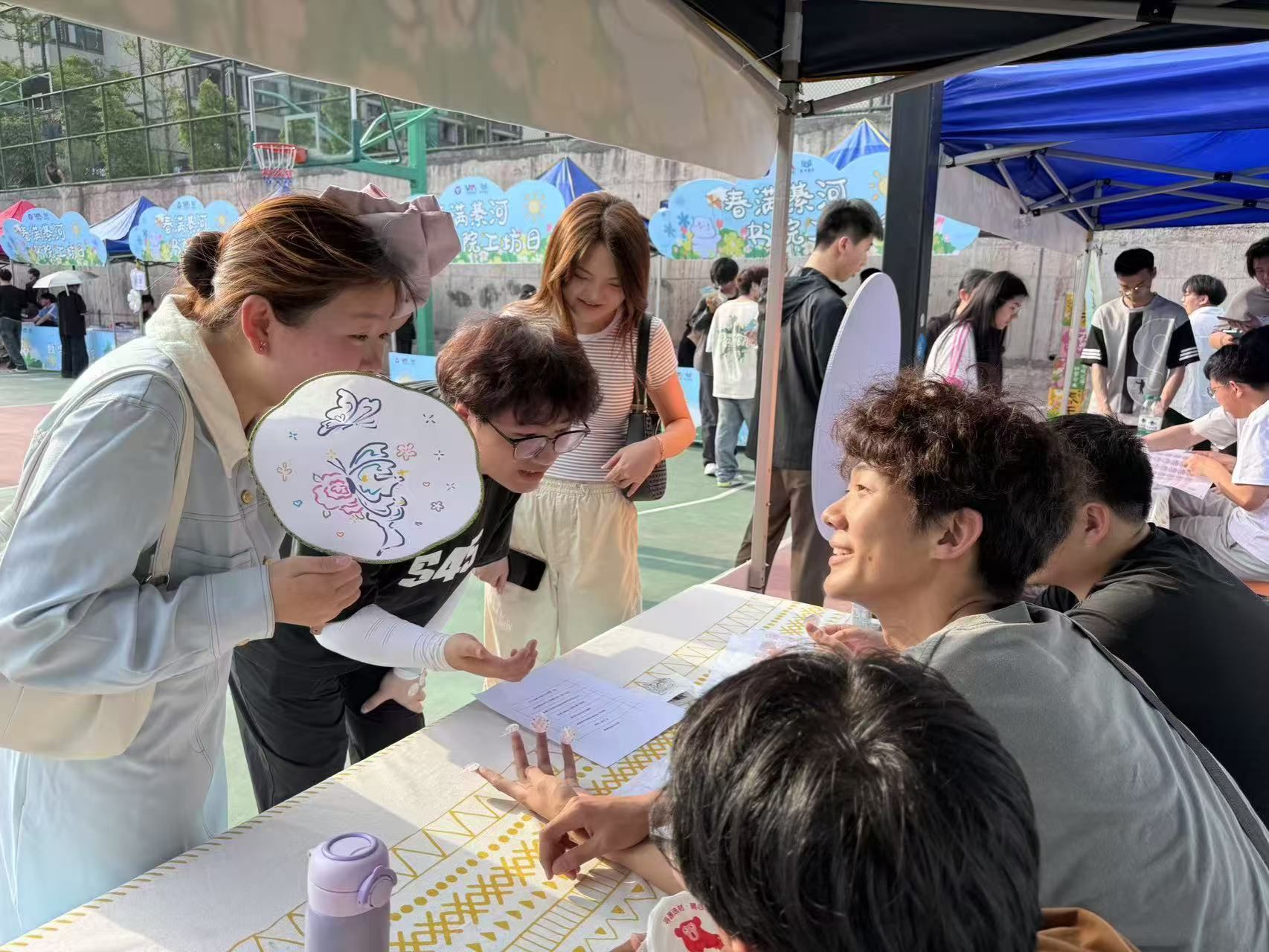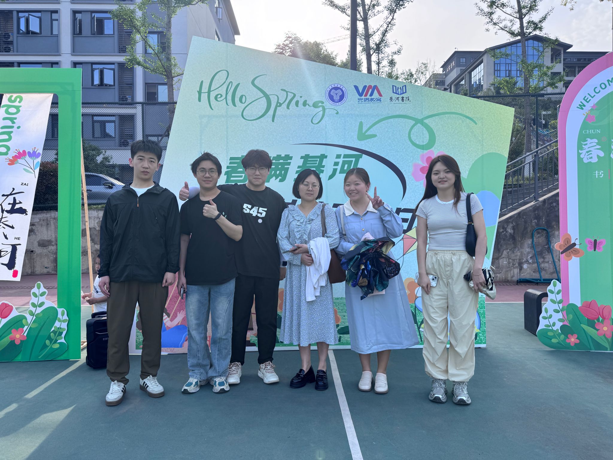 阳光洒在綦河书院旁的篮球场上,一场充满活力与创意的“春满綦河•书院工坊日”活动在此热烈开启。在2025年4月16日下午16:00,三位异科导师刘莉、李海燕、王中银携手部分异科导学生,师生一同沉浸在这场跨学科的奇妙盛宴中。